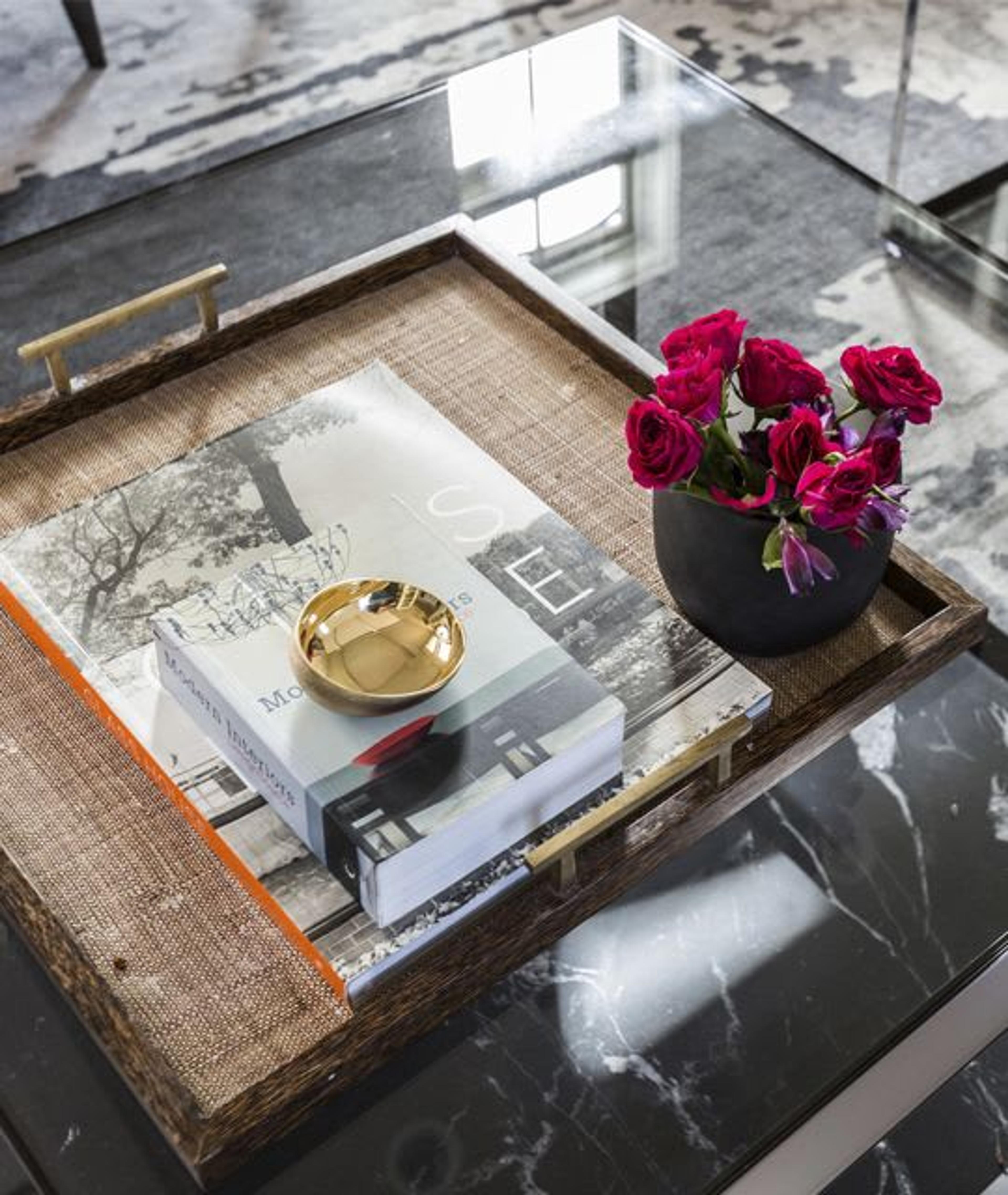 Coffee tables are one of the most versatile pieces to add to any interior project. Aperfect blend of furniture and decor because of their endless styling possibilities, when carefully designed they can add a touch of personality to suit the mood of an entire room. To contain classic coffee table books, vases, clorful flower compositions and even bowls and jewelery, an insider trick is to use a statement tray to tie the project together and to create a fil rouge between all the different elements of decor.