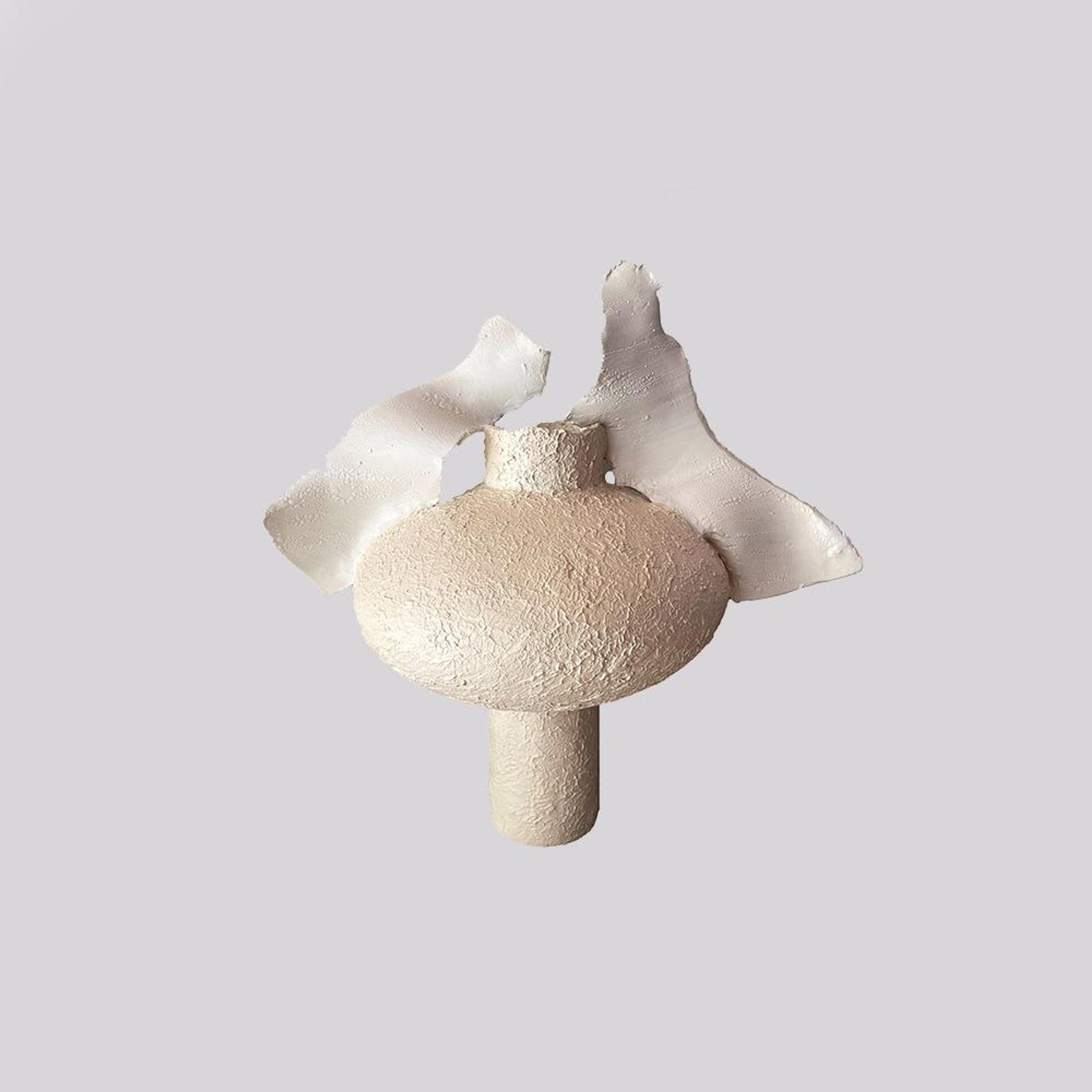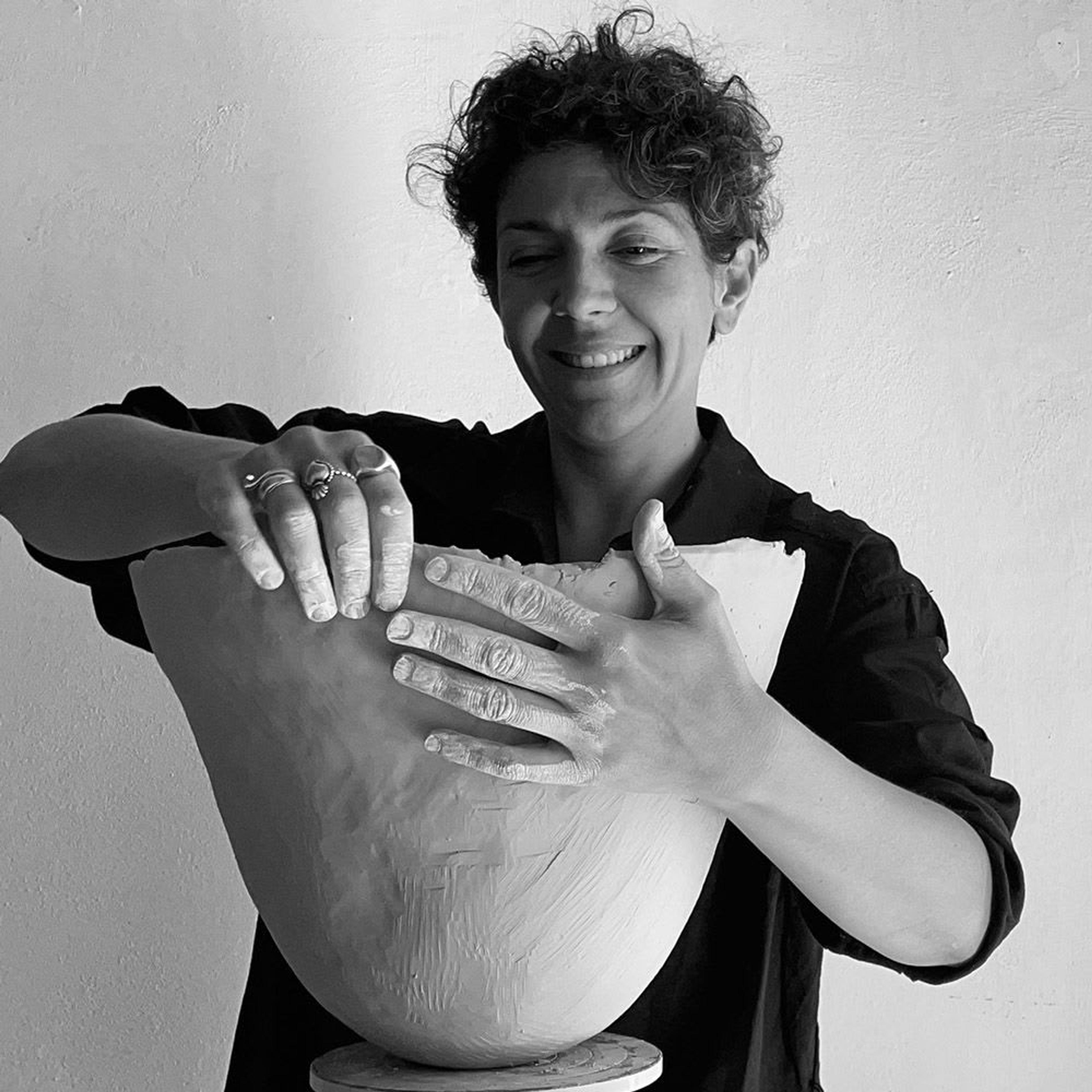 Teresa Lobelia D'arienzo ist eine italienische Künstlerin, die für ihre zeitgenössischen Vasen bekannt ist, die mit jahrhundertealten Techniken hergestellt werden. Sie arbeitet mit großen und leichten Formen auf kleineren oder schmalen Sockeln, die eine Spannung zwischen der Vorstellung von Stabilität und Zerbrechlichkeit erzeugen. Das Nebeneinander von Leichtigkeit, Rohheit und Unsicherheit inspiriert eine Serie, die von Unvollkommenheit und dynamischer Bewegung geprägt ist. Ihr kreativer Prozess ist intuitiv, sie reagiert auf ein allgemeines Gefühl für eine Form oder eine Oberfläche, und die Objekte, die zum Leben erweckt werden, sind in Textur gekleidete Behälter.