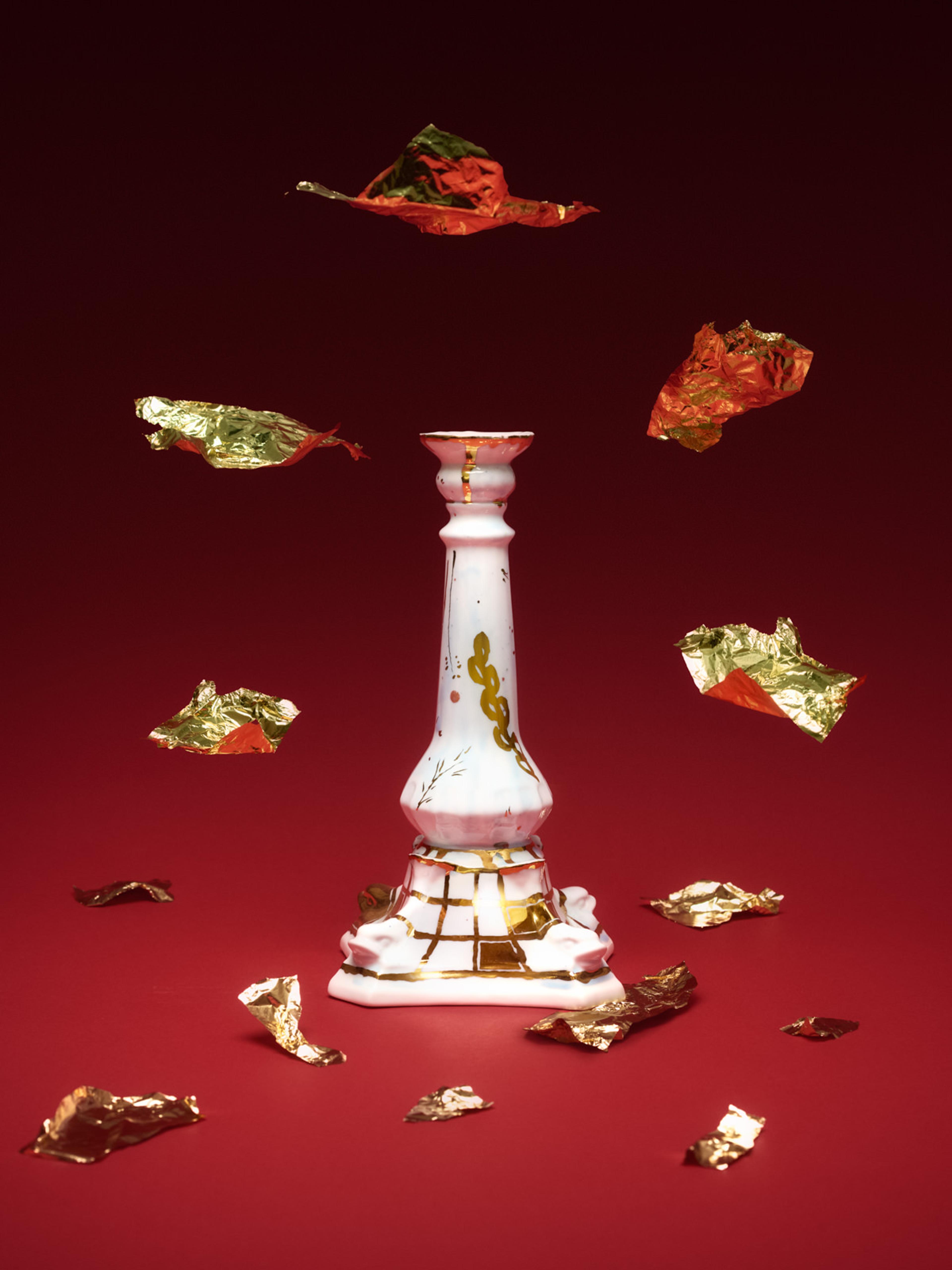 Der von Coralla Maiuri handgefertigte Porzellan-Kerzenhalter aus der Kollektion Livia's Garden ist eine raffinierte Mischung aus klassischer Inspiration und poetischem Charme. Inspiriert von dem berühmten Fresko zu Ehren von Livia, der Gemahlin des Kaisers Augustus, stellt die Kollektion einen idealen, traumhaften Garten zwischen Mythos und Realität dar. Die skulpturale Form des Kerzenhalters erinnert an die großen Monumente des alten Roms - wie die Obelisken, die die Stadt zieren -, während die sanften blauen und goldenen Farbtöne einen sanften, leuchtenden Schein verbreiten.