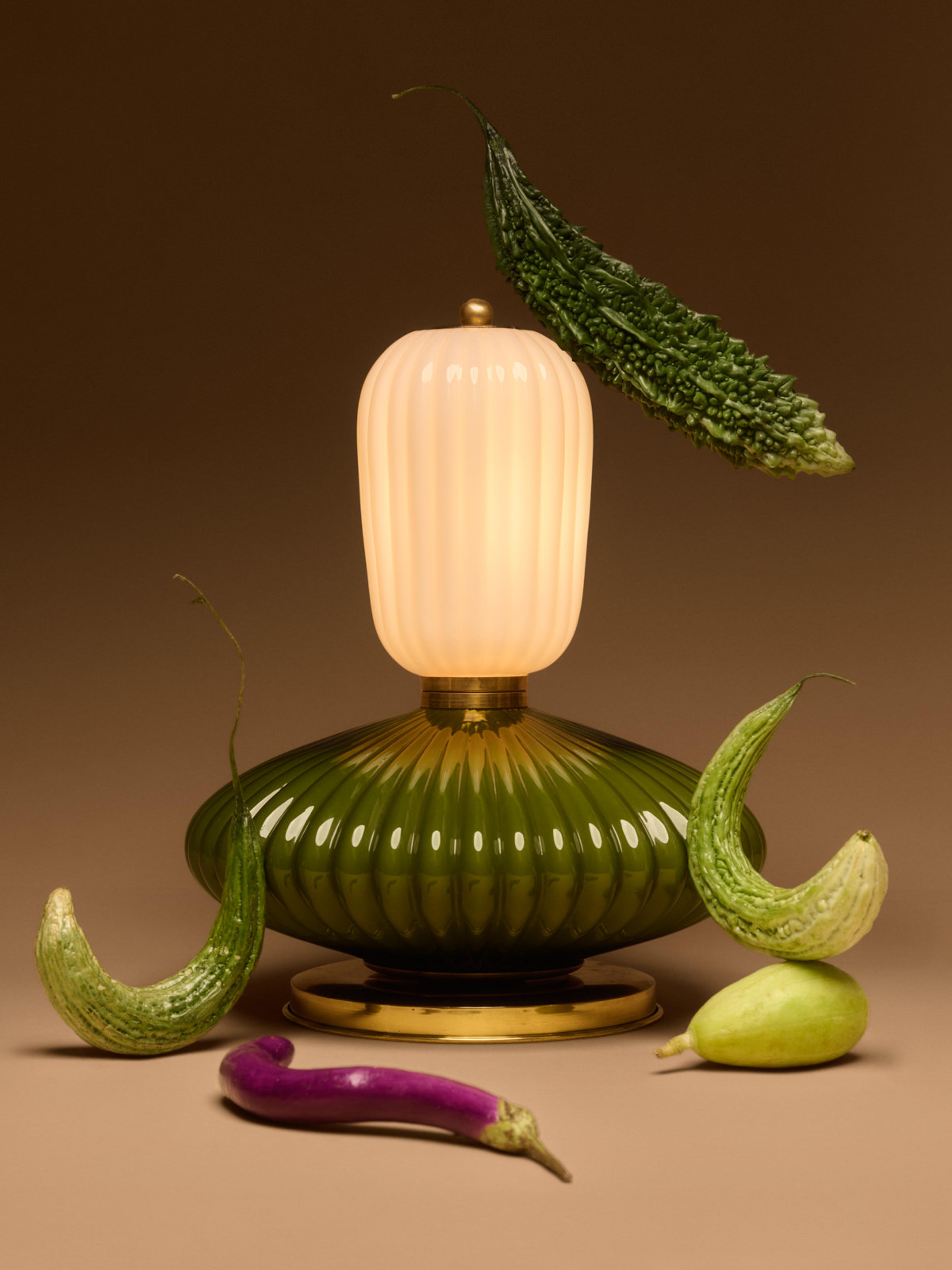 Die Echino Cactus Table Lamp von Marsica Fossati ist eine poetische, aus der Vergangenheit wiedergeborene Blüte und verwandelt Vintage-Fragmente in strahlende Kunst. Als Teil der Rebirth-Kollektion wurde diese Lampe aus wiederverwerteten Glas- und Beleuchtungskomponenten aus den 1950er bis 1970er Jahren sorgfältig zu einer skulpturalen Komposition zusammengesetzt, die Erneuerung und kreatives Gleichgewicht zelebriert.