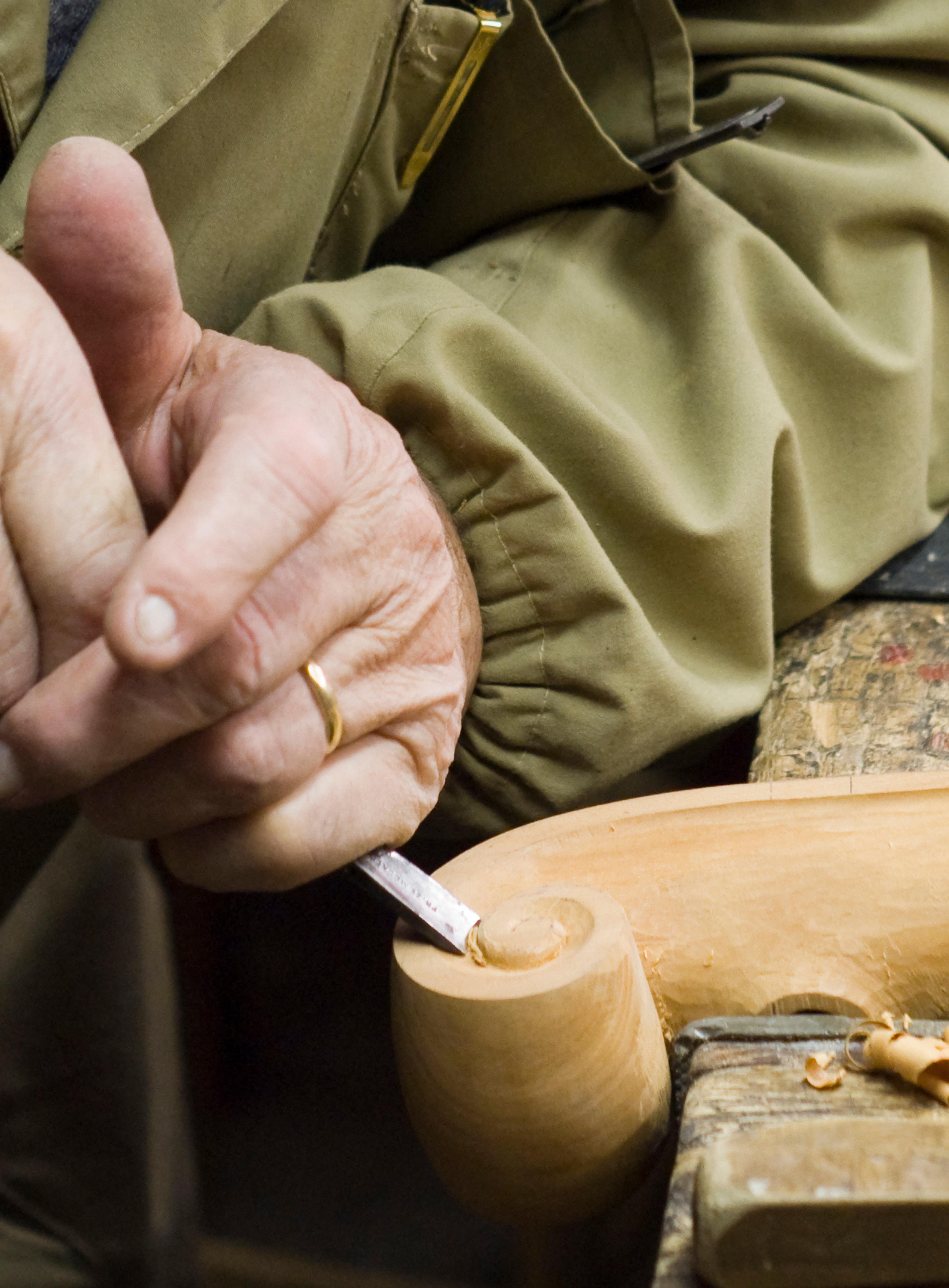 Holz aus Chiavari - Chiavari ist berühmt für seine tausendjährigen Wälder mit Buchen, Kirschen, Eschen und Ahornbäumen. Diese Wälder unterstützen das Holzhandwerk seit Jahrhunderten dank der nachhaltigen Erntemethoden der italienischen Holzfäller. Hier bearbeiten Fratelli Levaggi seit drei Generationen Holz und lassen historische Stücke wie den berühmten Campanino-Stuhl entstehen.
