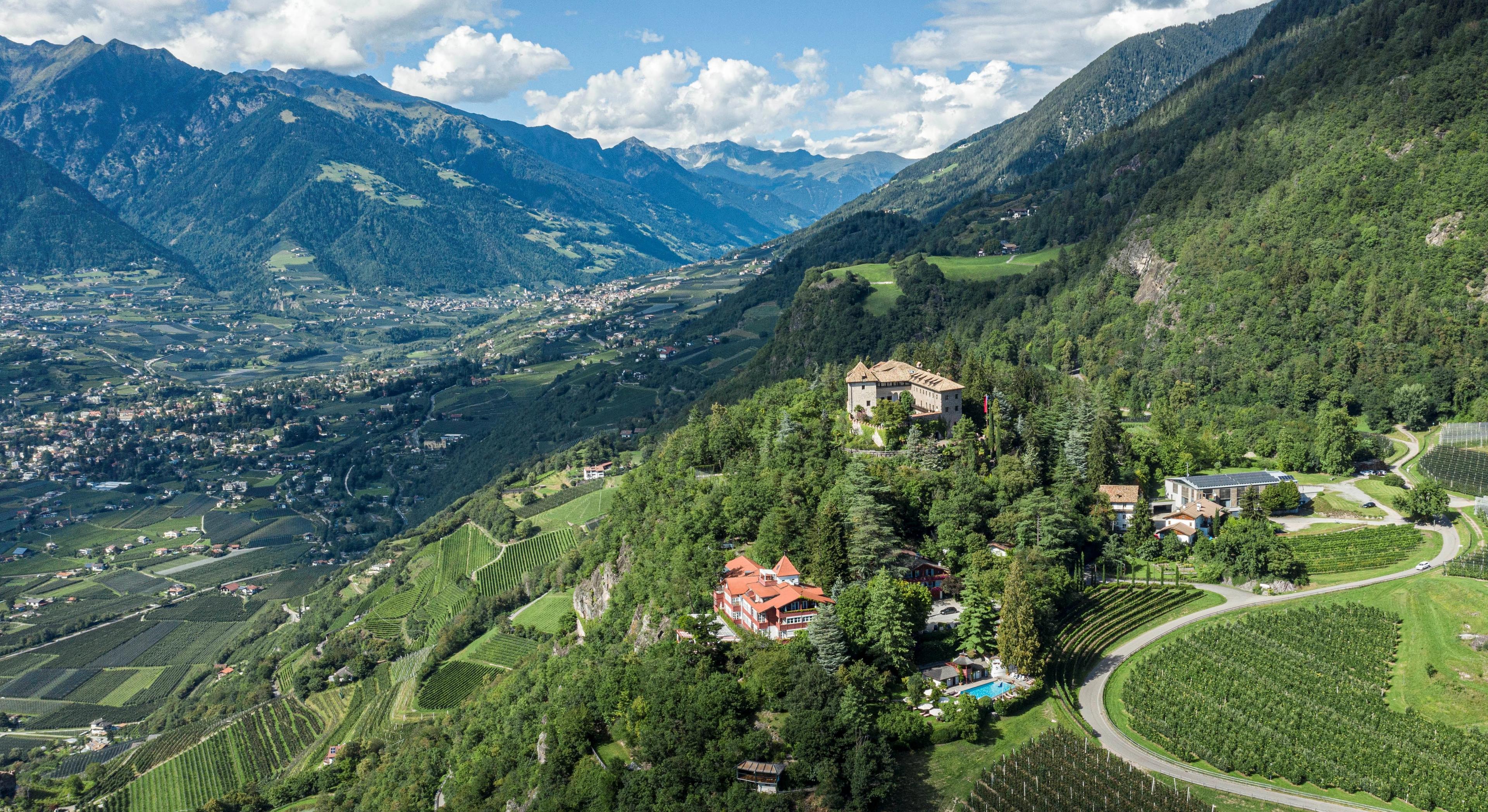 Hoch über der Alpenstadt Meran thront Castel Fragsburg, ein fünf-Sterne-Refugium, wo Jahrhunderte der Geschichte auf raffinierte Modernität treffen. Das Anwesen besteht aus zwei historischen Objekten: dem Maternum, erbaut 1624 als Jagdhütte und das Herz des Hotels, das die Familie Ortner seit 1954 liebevoll führt, und dem Paternum, einer im 14. Jahrhundert erbauten Burgruine auf einer Klippe, die ursprünglich von Otto von Auer errichtet wurde und kürzlich von der Familie wieder mit dem Maternum vereint wurde.