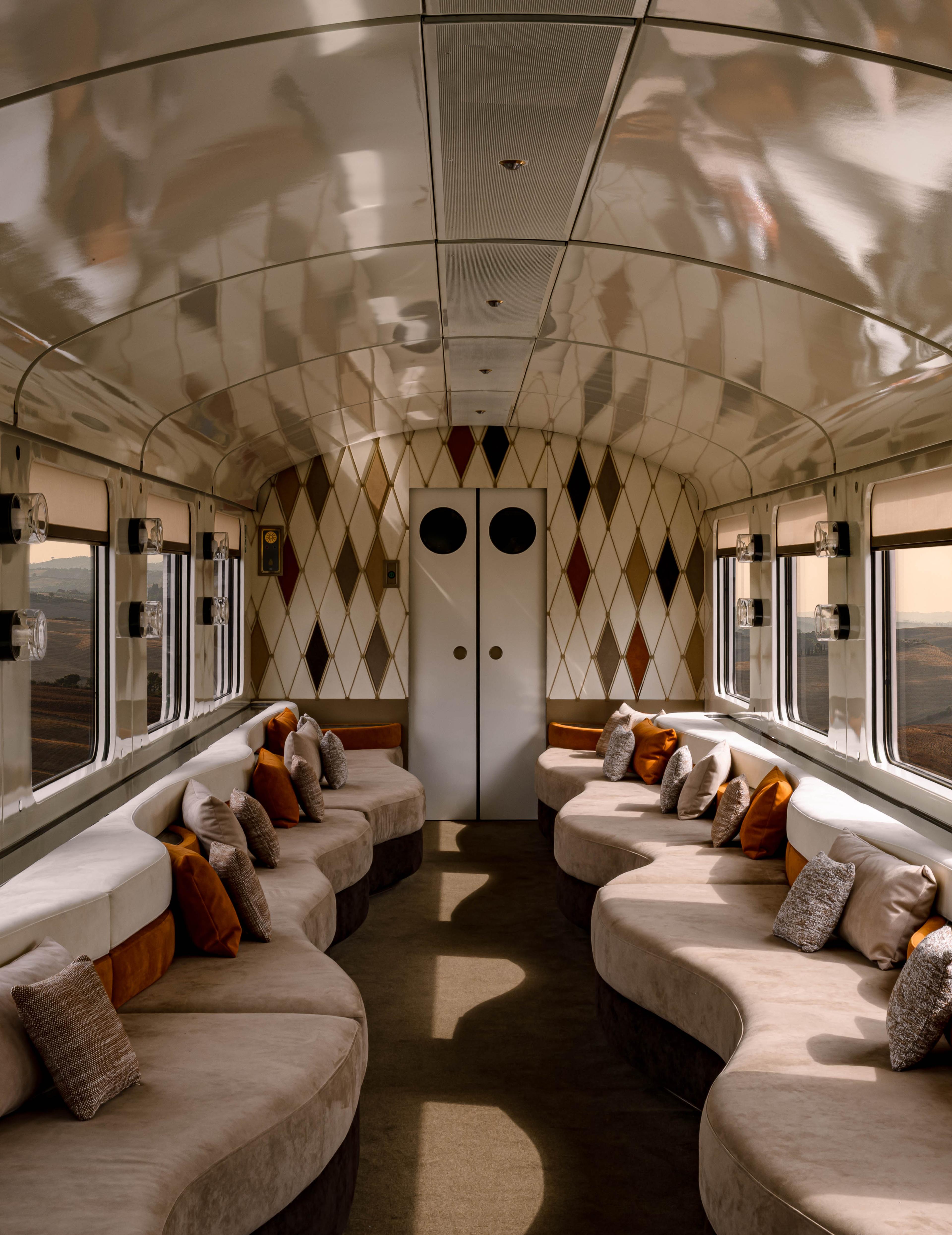 Der Zug wurde im glamourösen Ambiente des Bahnhofs Roma Ostiense in der exklusiven, vom Architekten Hugo Toro entworfenen La Dolce Vita Lounge enthüllt und stellt eine kühne Zusammenarbeit zwischen Arsenale und Orient Express dar, unterstützt von Fondazione FS Italiane und FS Treni Turistici Italiani. Dieses einzigartige italienische Luxuszug-Erlebnis zielt darauf ab, das goldene Zeitalter des Reisens wieder aufleben zu lassen und den Gästen ein bewegendes Porträt der emblematischsten Reiseziele des Landes zu bieten.