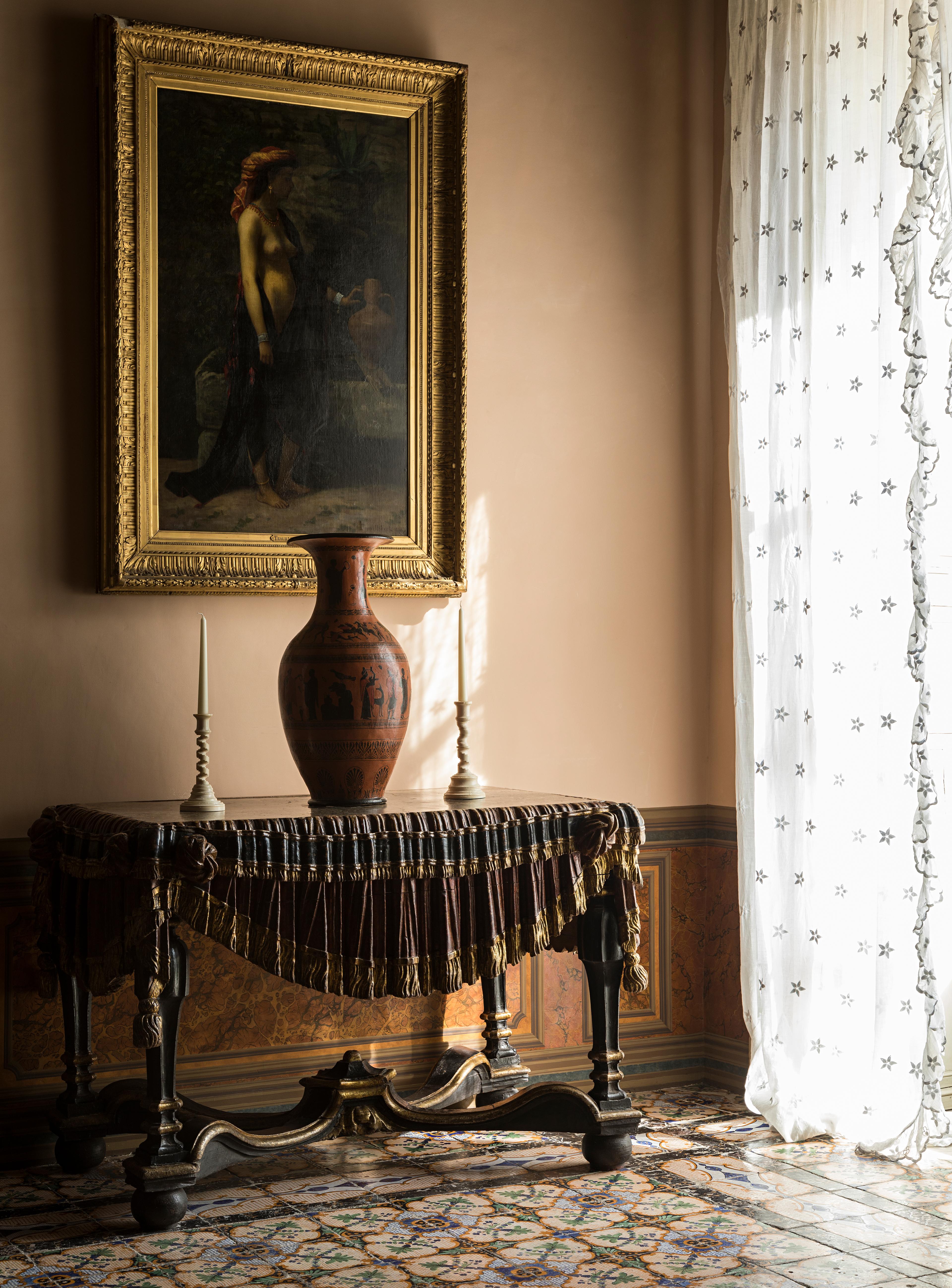 Der sizilianische Palast aus dem 18. Jahrhundert wechselte im Laufe der Jahre mehrmals den Besitzer, behielt aber immer seinen eigenen Charme und seine einzigartige Ausstrahlung. Im Jahr 2011 erwarb der französische Filmemacher Jean-Louis Remilleux den Palazzo, um ihn zu restaurieren. Seine Hauptinspiration war ein fiktiver Roman von Tomasi di Lampedusa - Der Leopard - und er entschied sich, zusätzlich zu der atemberaubenden Einrichtung, die das ursprüngliche Gebäude charakterisierte, mit Hilfe von Antiquitätenexperten und lokalen Kunsthandwerkern auffällige Stücke einzubauen.
