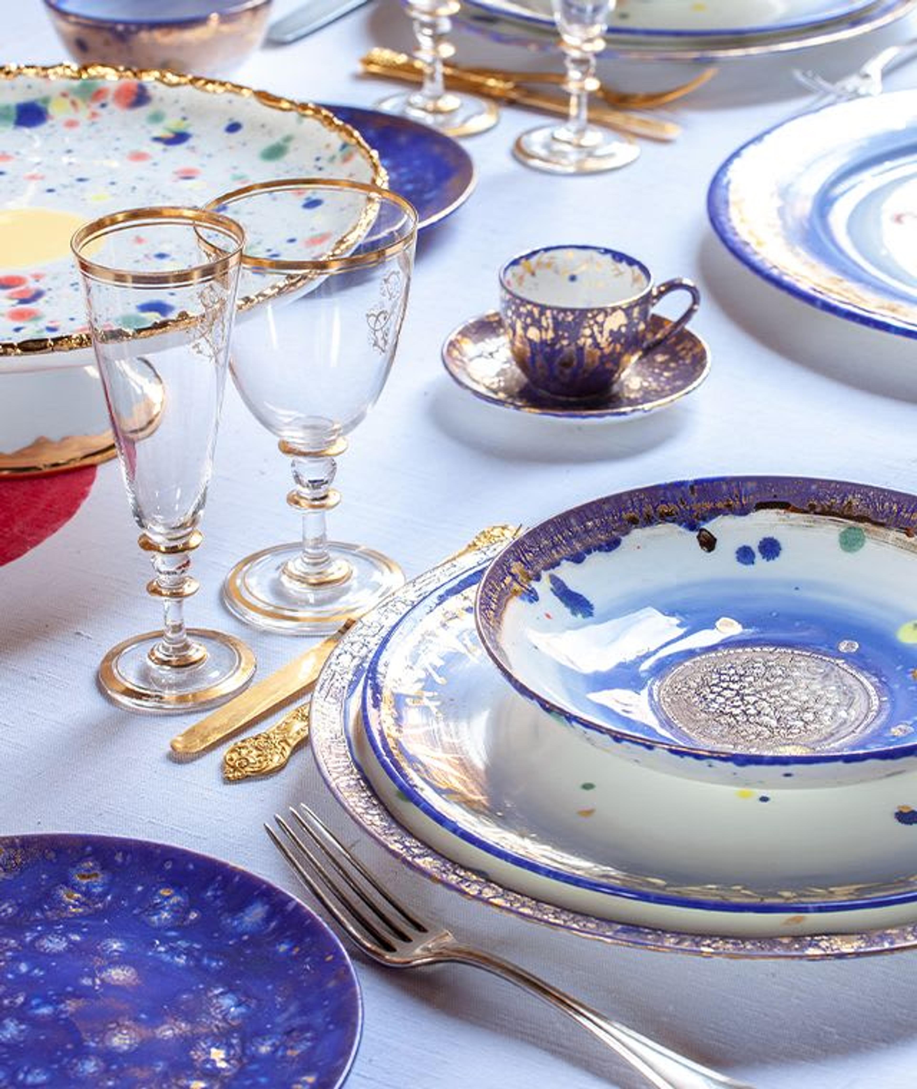 Lernen Sie Coralla kennen und stöbern Sie in ihren zarten, blattvergoldeten Tellern, überdimensionalen Vasen mit expressionistischen Farbklecksen und einem Feuerwerk an exquisiten Tischaccessoires voller Anmut und Lebensfreude.