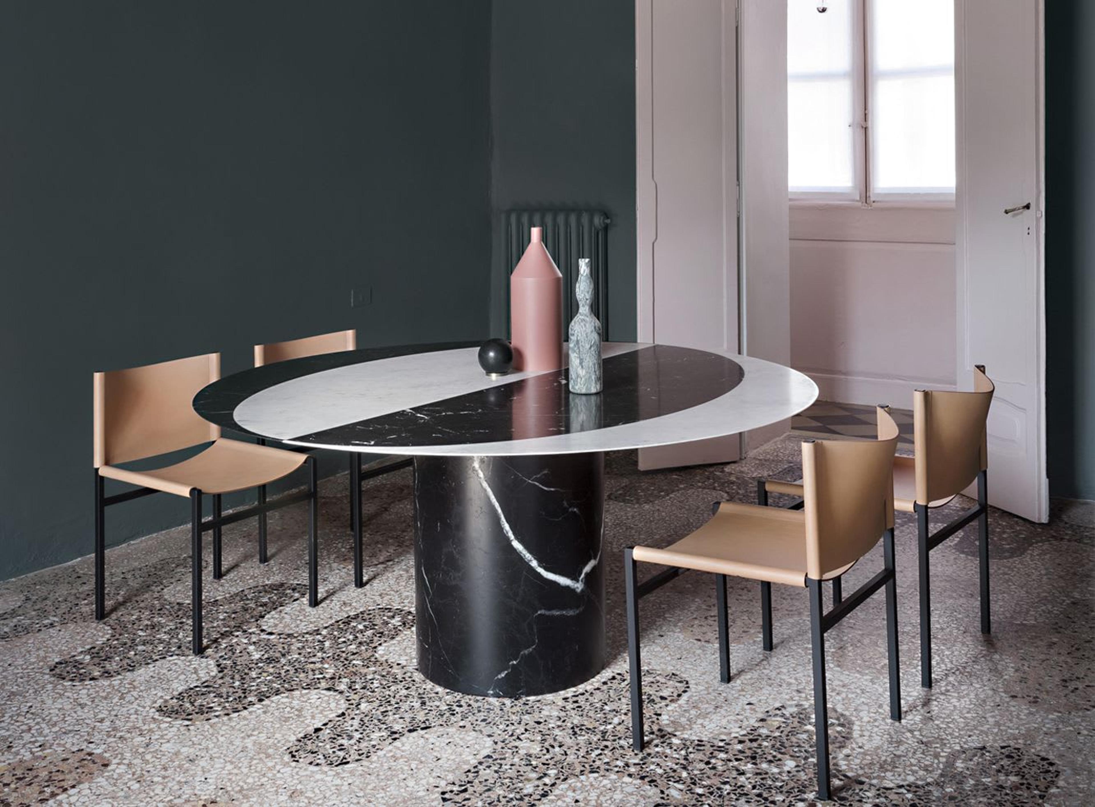 Unsere kuratierte Tischkollektion erkundet eine der beliebtesten Designoptionen für dieses Material, denn das prächtige Aussehen von Marmor passt perfekt in den Raum eines Esszimmers: vom zeitlosen Aussehen von weißem Carrara-Marmor in Kombination mit skulpturalen Formen von Frédéric Fourrichon für Fratelli Speranza, über die zarten und raffinierten Farbtöne von rosa Marmor von Fred&Juul bis hin zu unerwarteten Mischungen von schwarzem Marquina und weißem Carrara in Marmortischen von Salvatori.