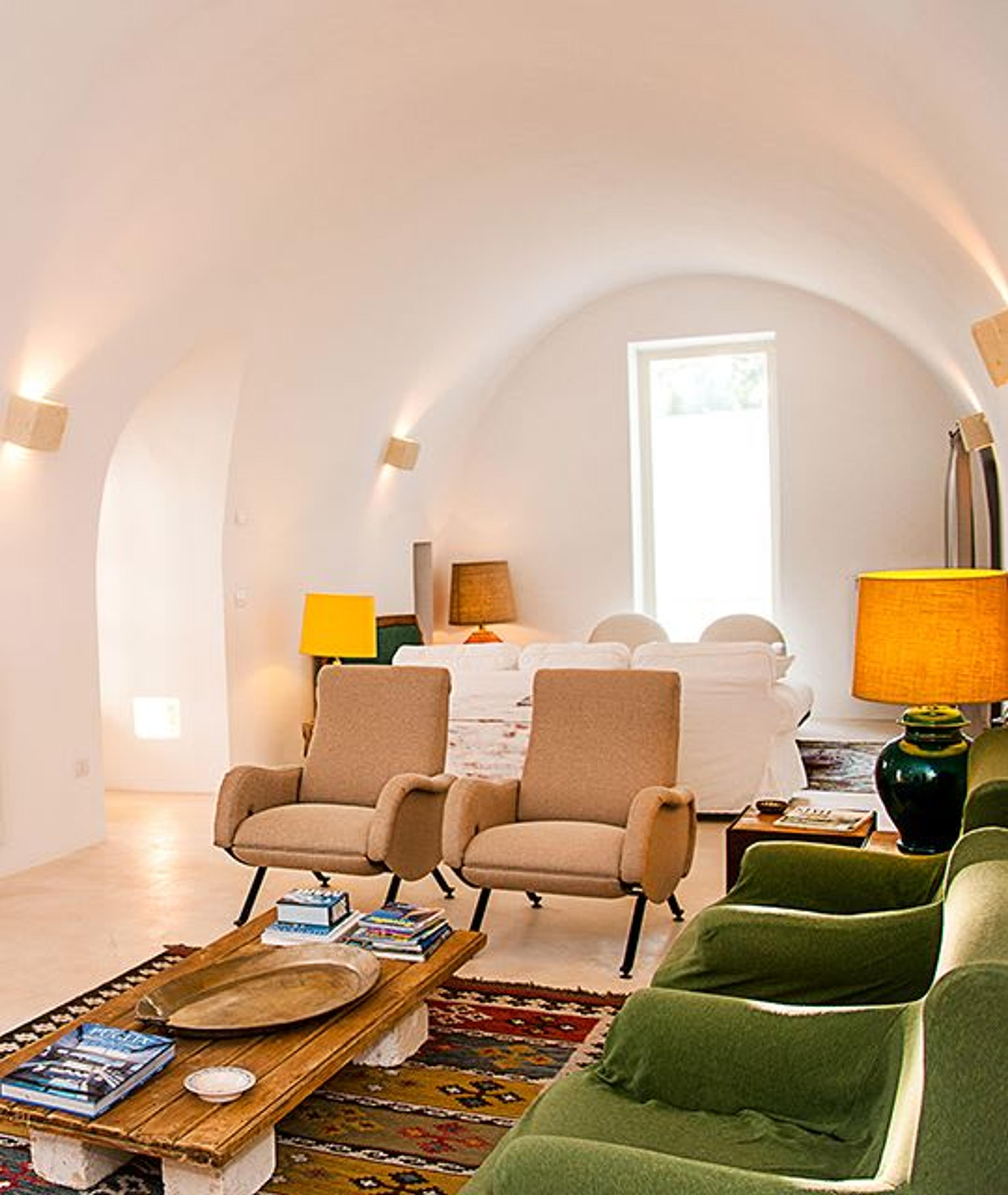 Die Dekorationselemente wurden von Lorenzo Antonacci selbst sorgfältig ausgewählt. Cool Steingut Boden, die alten Trulli Türen, gemütliche Sitzecke ist mit grünen Flaschen, dekorative Platten verschönert.