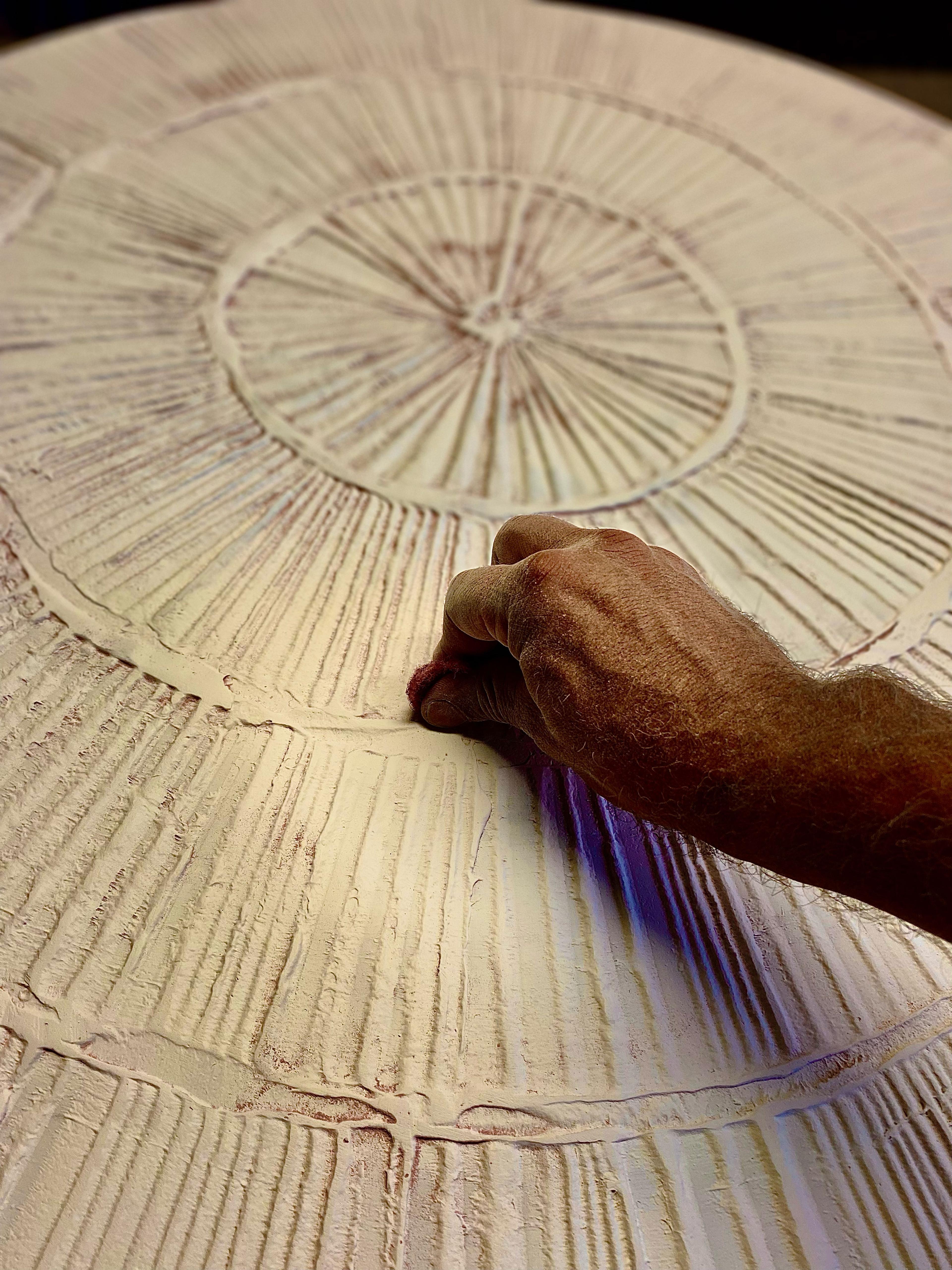 Meine Arbeit mit BottegaNera-Stücken begann mit einem Fokus auf Dekoration, Skulptur und Relief, die sich leichter in Möbelkomponenten integrieren lassen. Ich konzipiere, forme und prototypisiere hauptsächlich Acryl-Stucke – wasserbasiert – die drei wesentliche Eigenschaften erfordern: finale mechanische Festigkeit, anfängliche Formbarkeit, um gewagte Formen und Dekorationen zu ermöglichen, und die Fähigkeit, die verschiedenen in der Fertigstellung verwendeten Polymere aufzunehmen und zu widerstehen.