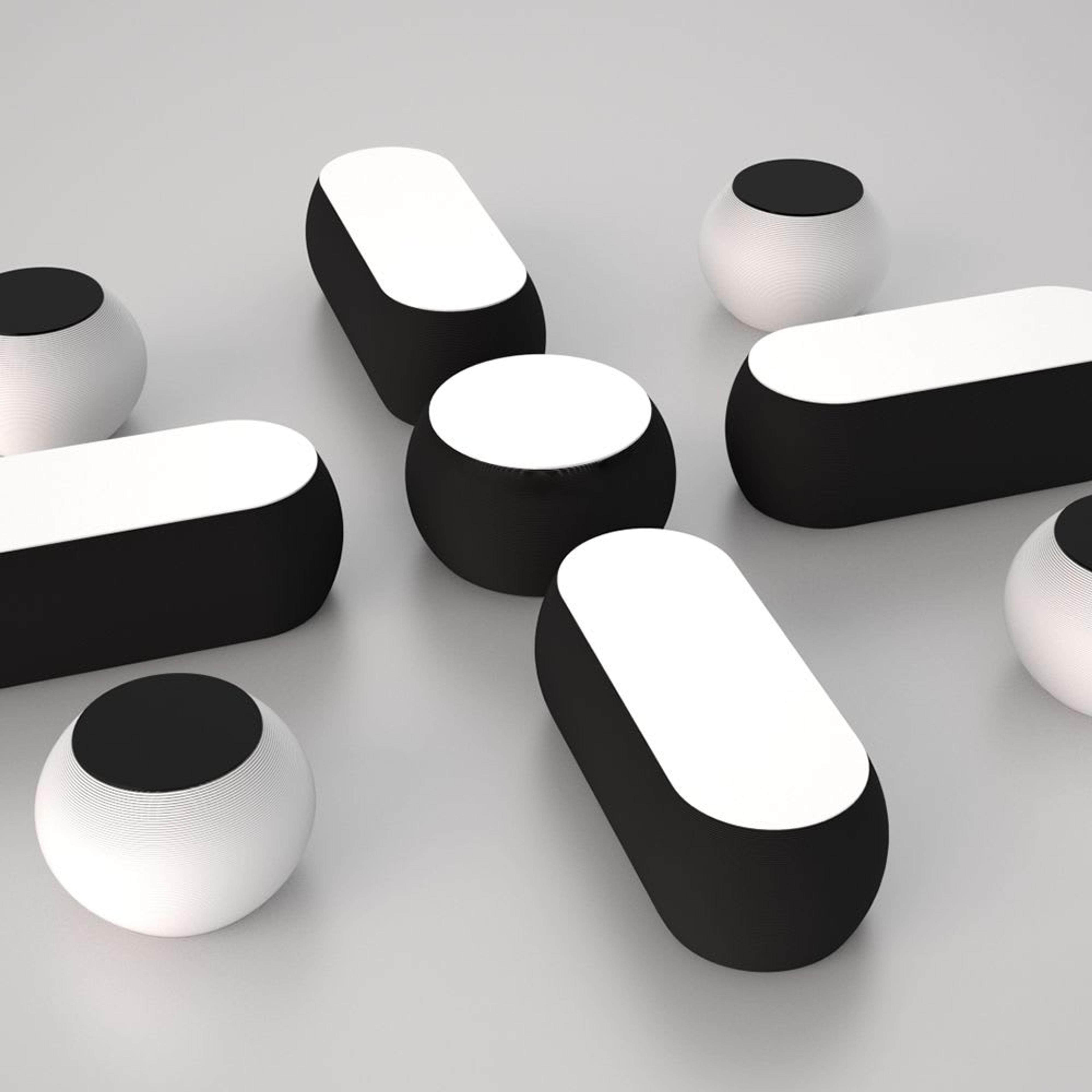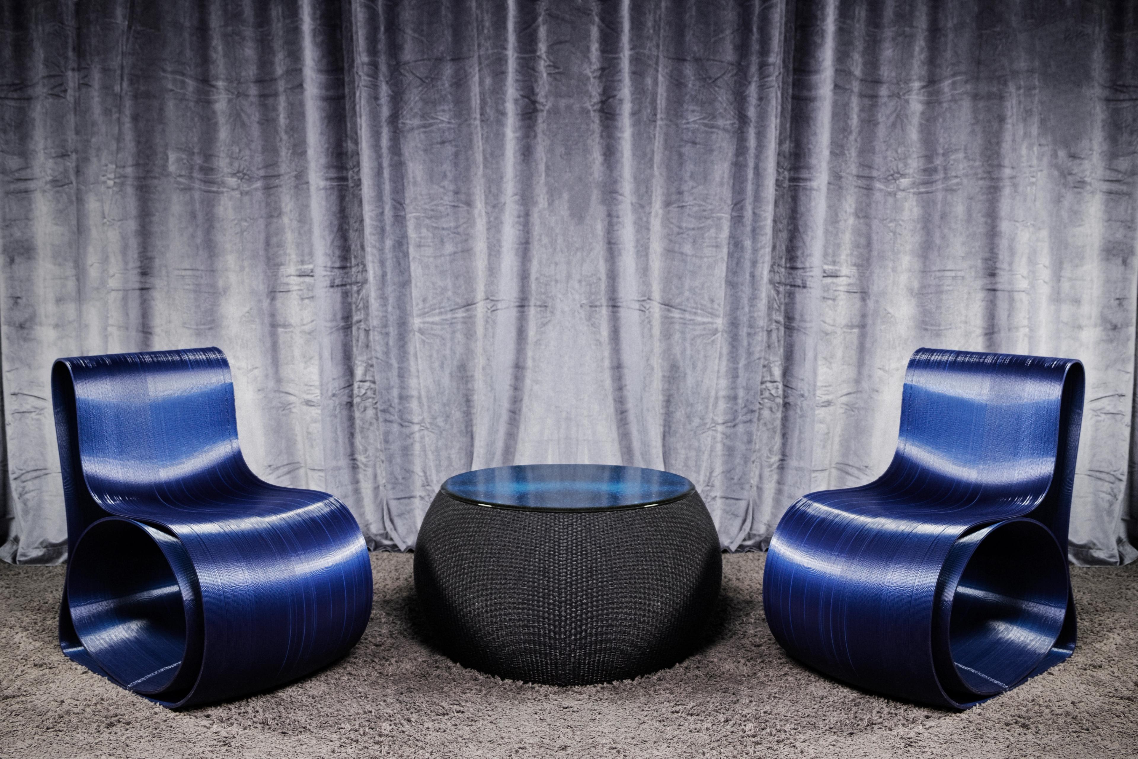 A collection of oval-shaped, 3D-printed components that serve multiple functions depending on the shape.Zero sweeps without limits between complex and futuristic shapes that wouldn’t look out of place in any context—private, residential, or hospitality. They can be combined in different configurations to create setups in lounges, holding areas, and office spaces to striking effect. At present, it is available in two color ways including a lighter option made from a glossy white PLA that comes with a natural oak table top, and a darker variation made from recycled plastic with a white Fenix table top. Zero intends to represent a concept of freedom, leaving people free to interpret it and place it with infinite possibilities.