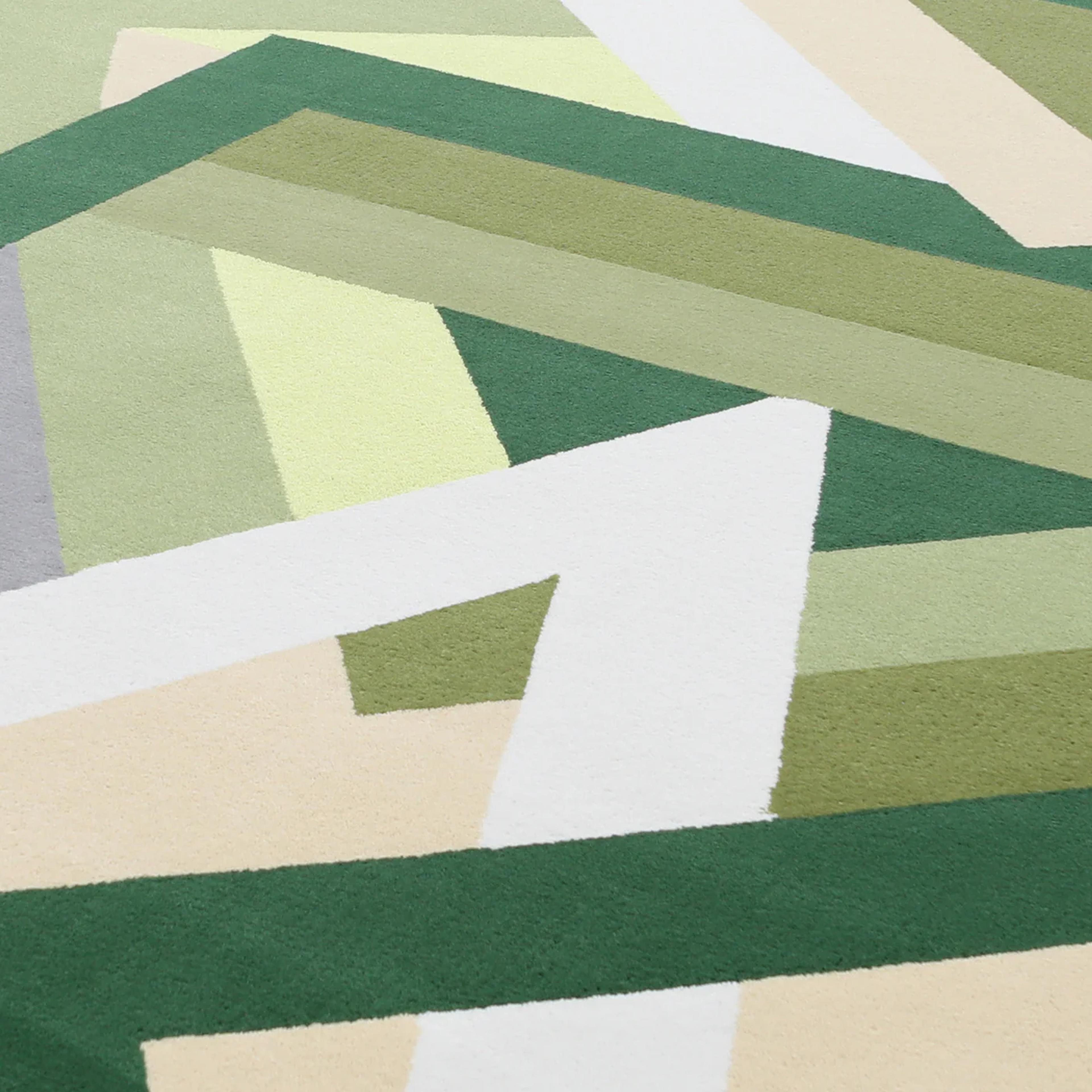 To achieve a three-dimensional effect, we combined various techniques—including velvet, bouclé, shaggy, and 3D carving—carefully layering them and playing with different pile heights to enhance depth and dynamism.