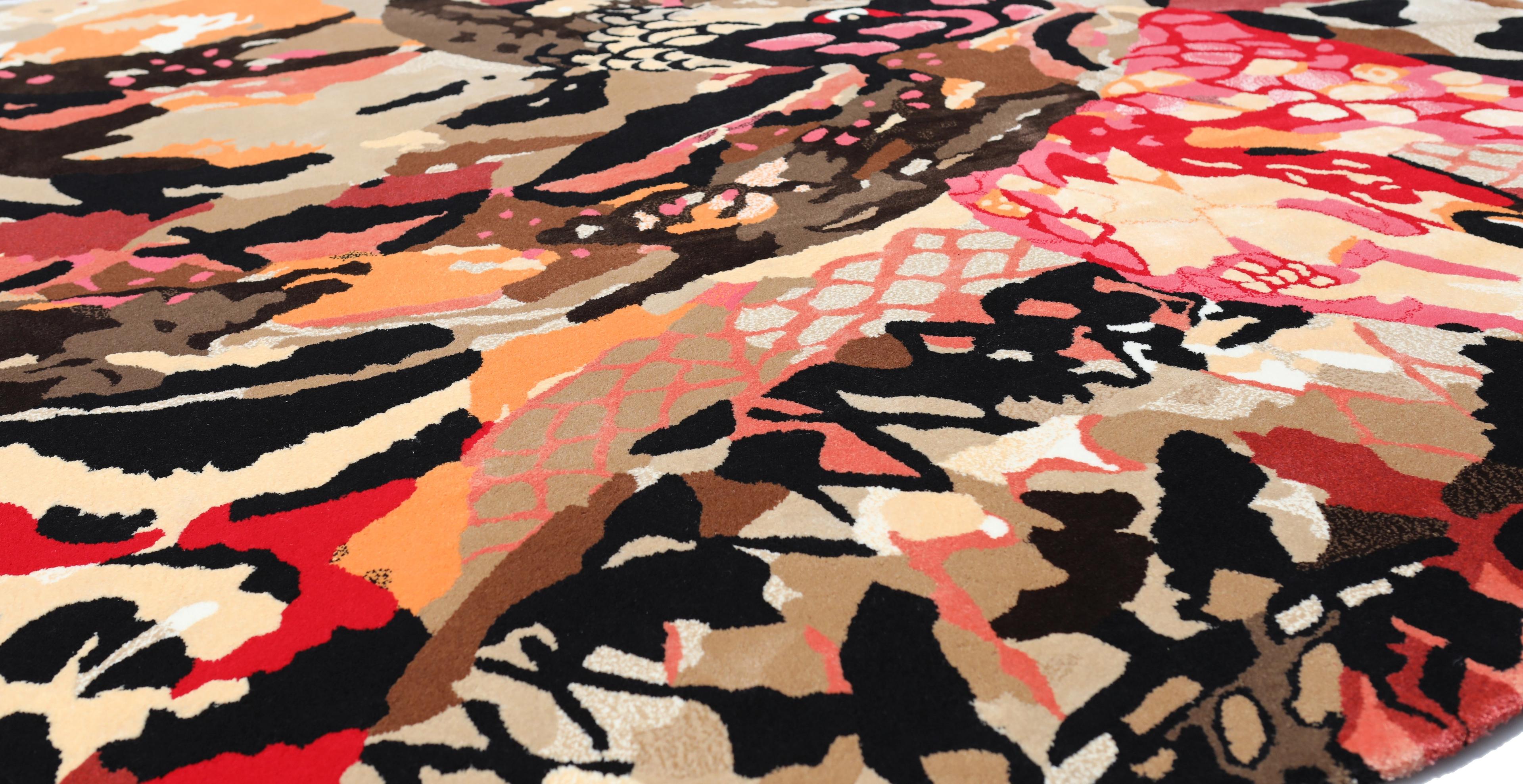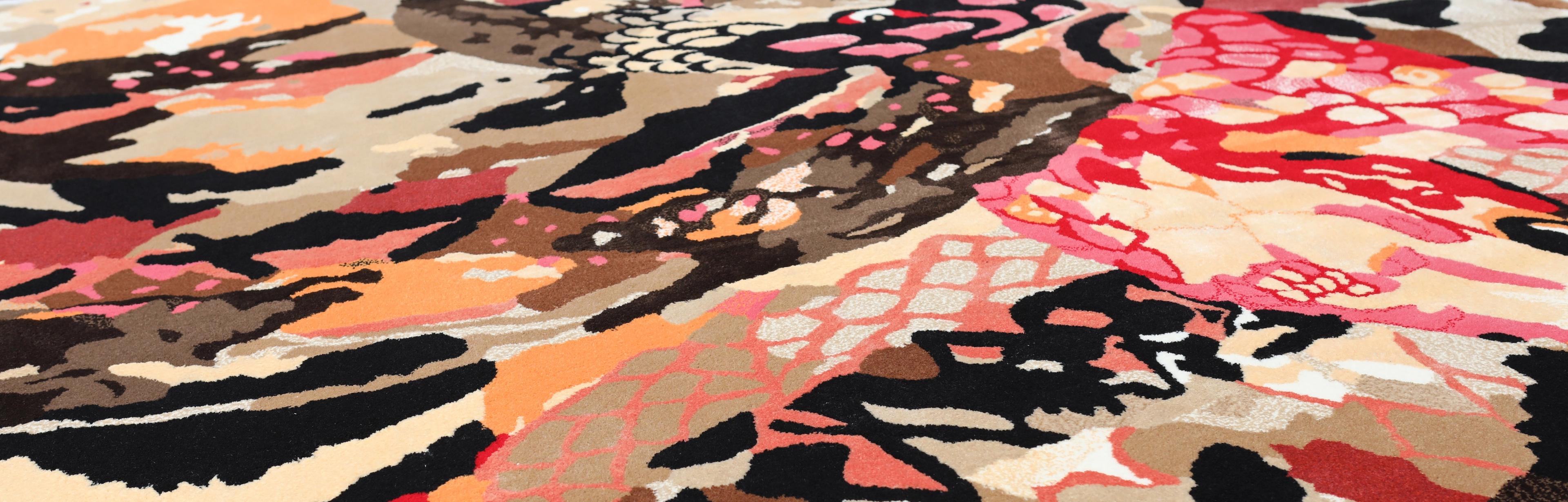 To faithfully reproduce the vibrancy of his colors, the richness of textures, and the precision of forms, we selected premium materials such as New Zealand Wool, Hardtwist, Linen, and Tencel. These are crafted using hand-tufting techniques across multiple levels.