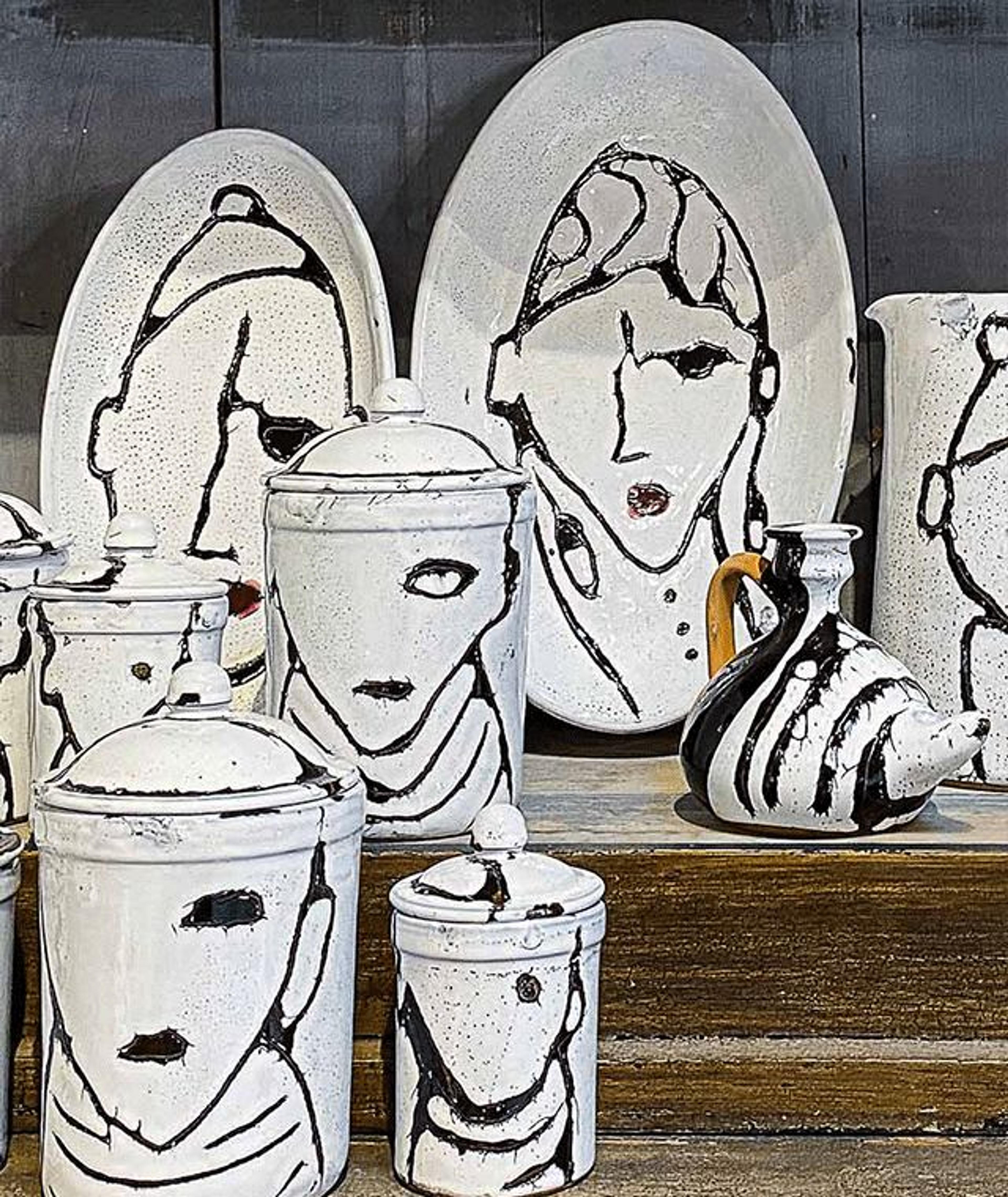 Ceramics has a basic essence just like tradition, generosity, and hospitality. The table, heart of hospitality that accompanies the most intimate and convivial moment of the day, is paired with the “I fratelli Pois'' Collection, while the house is enlivened with unique, extraordinary decorative pieces that seem to step out of Ovidio’s Metamorphoses. Ceramic is unmistakable, with sometimes unconventional hand-painted shapes and features seemingly inspired by fables and the subconscious. Vases, candleholders, lamps, tiles, totem sculptures, rosoni, decorative objects, bowls, plates, cutting boards, and objects of daily use that instead reveal unexpected, captivating details.