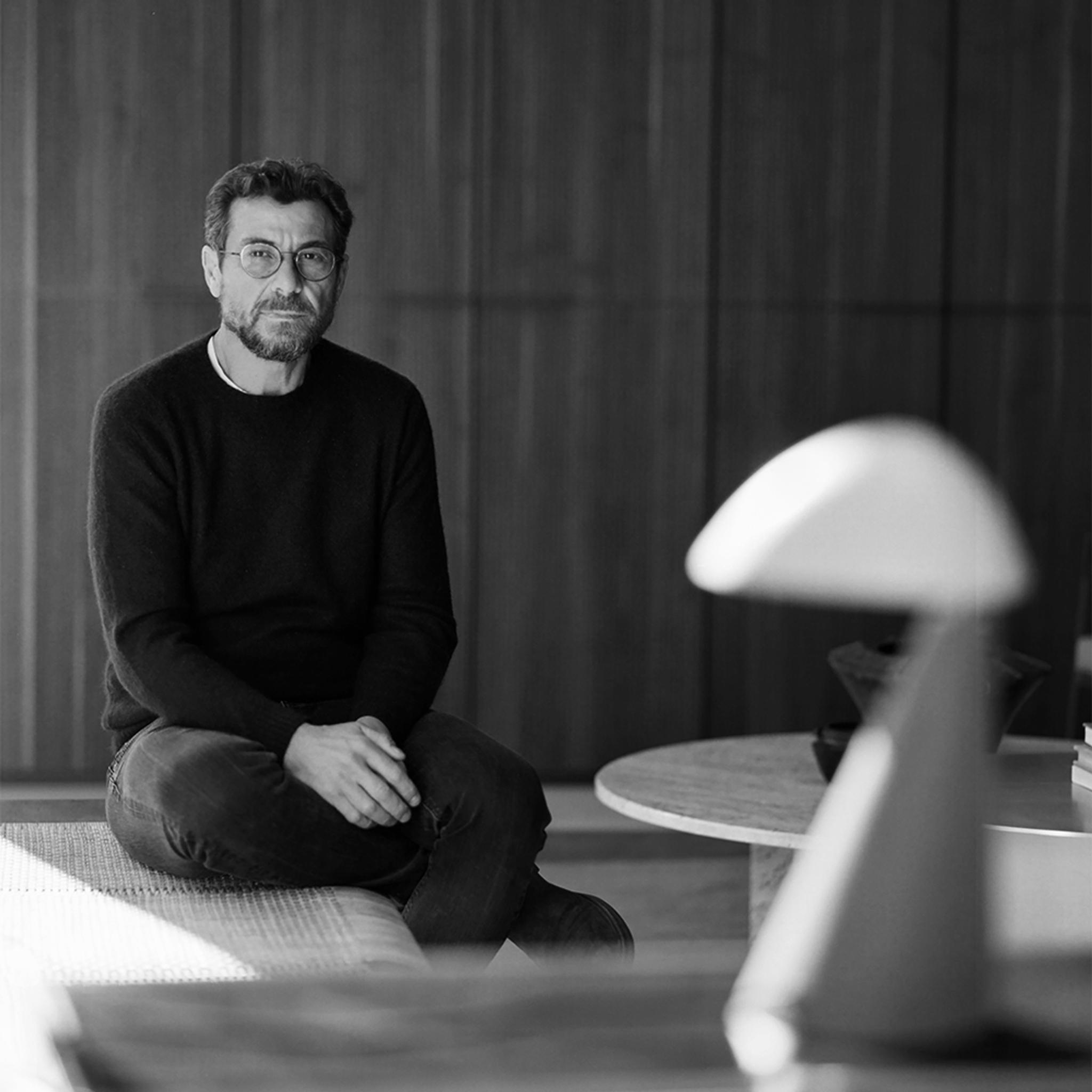 The Himba cabinet, a black-stained solid ash box with built-in shelves, has closing doors composed of an ash frame and woven rope. The weave is traditionally designed on an orthogonal frame, except in its central part, where a lighter pattern of weaving made with a single thread makes the vertical direction of the warp visible. Also available in natural, walnut-stained ash and with a black rope weave.