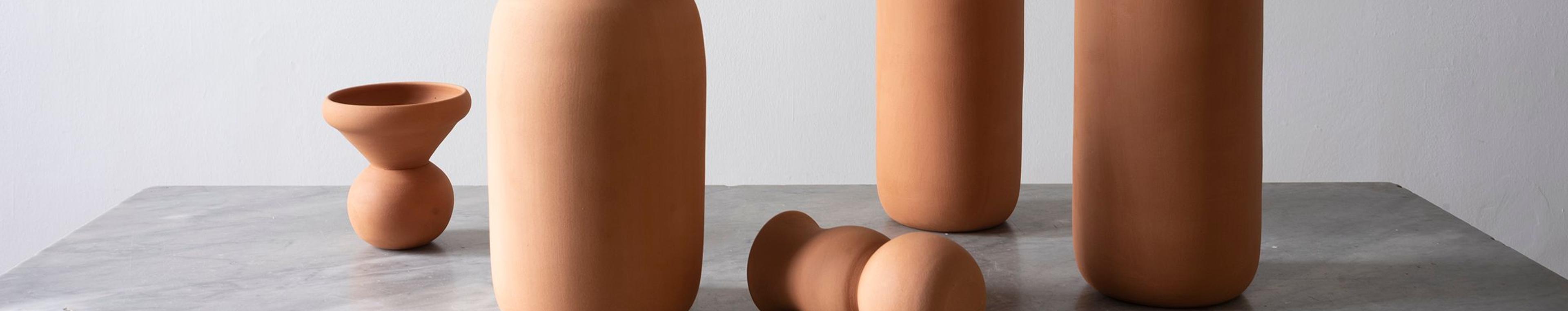 In addition to the earthy nuances of Terracotta, its unique texture is what makes a distinctive impact in the decorative pieces crafted with the material. In this collection, different shapes come together to depict a unique heritage in clay molding techniques. Discover the wonderful and colorful details of hand-painted and carved vases by Clara Holt, the traditional planters by Fornace Masini, the sinuous shape of the Almost Home Vase by Bottega Made in Cloister designed by Diego Cibelli, or the blend between terracotta and other materials in the selection of pieces by Seleusi Italian Craftmanship.