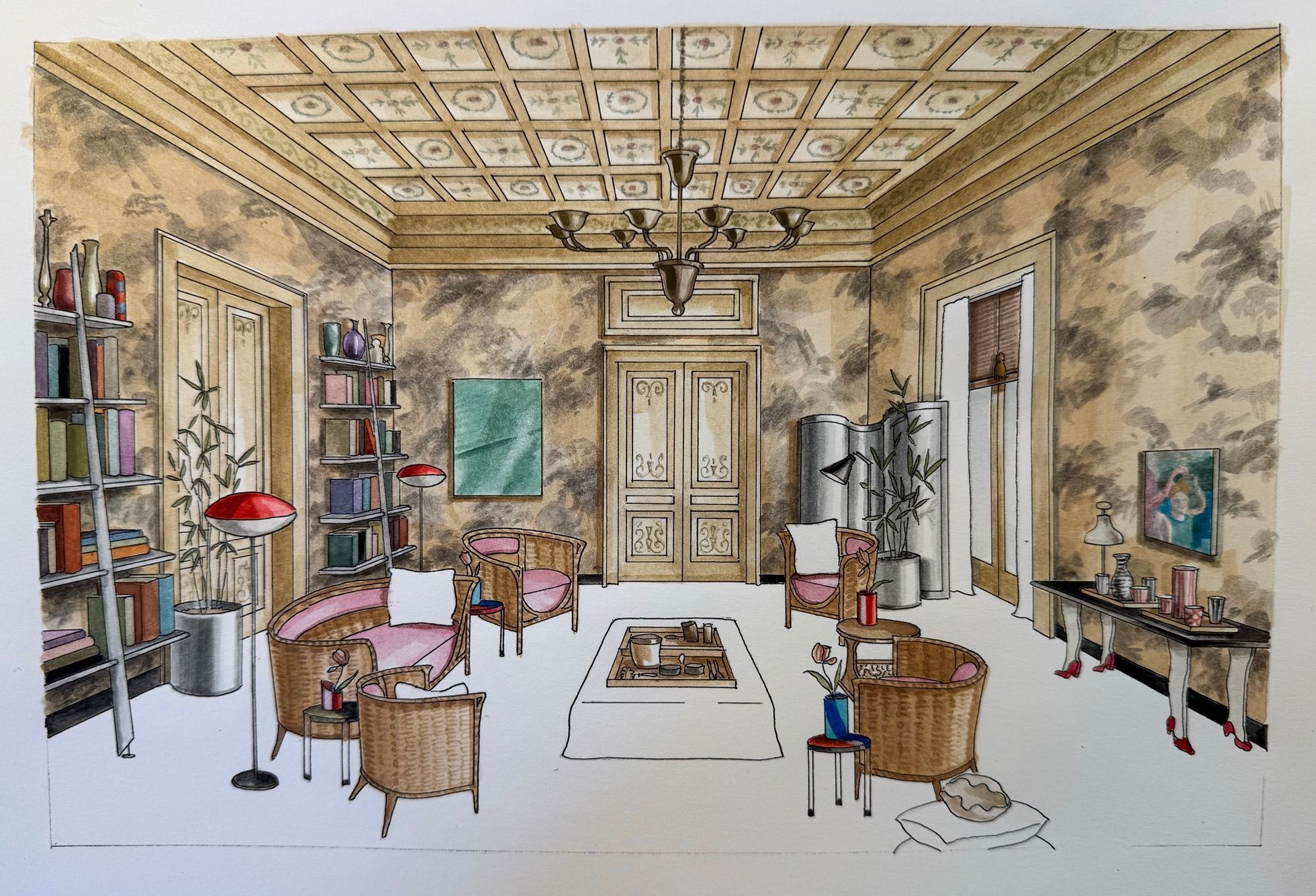 Within this remarkable setting, five acclaimed design studios— Charlap Hyman & Herrero, MAWD | March & White Design, Rockwell Group, Sasha Adler Design, and Urjowan Alsharif Interiors — each transform a distinct space, showcasing a curated selection of Italian furniture, lighting and décor by Artemest’s finest artisans.