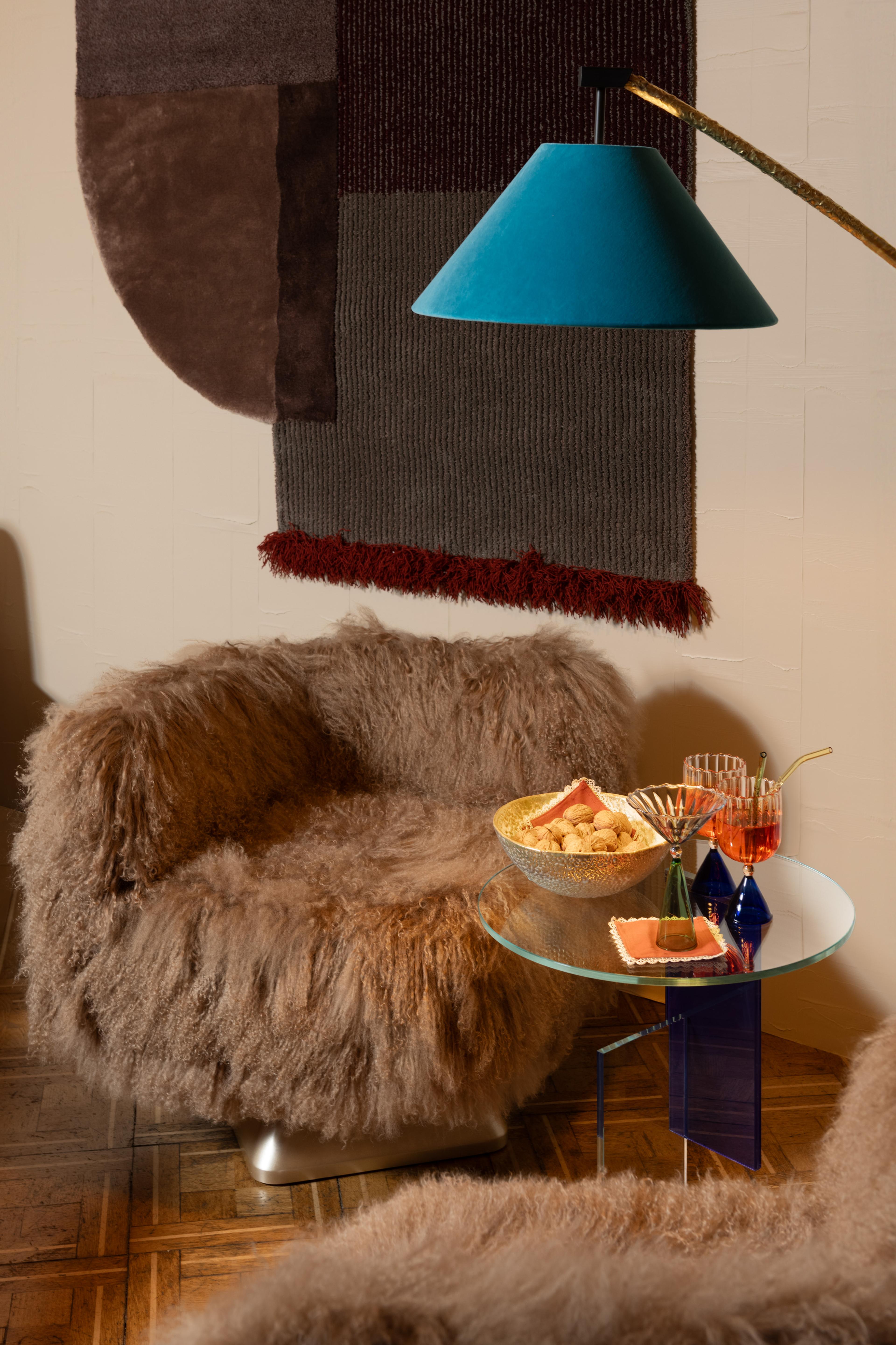Charu Gandhi’s goal was to provide visitors with an immersive journey of discovery, accentuating the grandeur of the building while paying homage to its illustrious past and celebrating Italian craftsmanship. The result is a soulful yet vibrant interior that resonates with the authenticity and heritage of the setting.This rich history influenced the selection of pieces from the Artemest collection, which feature links to both the early and mid-20th century, with contemporary twists and accents, aiming to evoke a sense of evolution and progression, rather than presenting a jarring clash of new furnishings in a period setting. Elicyon’semphasis on textural depth and softness plays a key role in creating a cocooned and sensorial atmosphere. The deep, enveloping textures of the armchair upholstery and a wraparound sofa not only evoke a sense of cosiness, but on a practical level aid the acoustics of the space. Rugs are suspended on the walls, against a backdrop of hand painted wallpaper to further enhance the softness of the space, adding to the layering of the room.