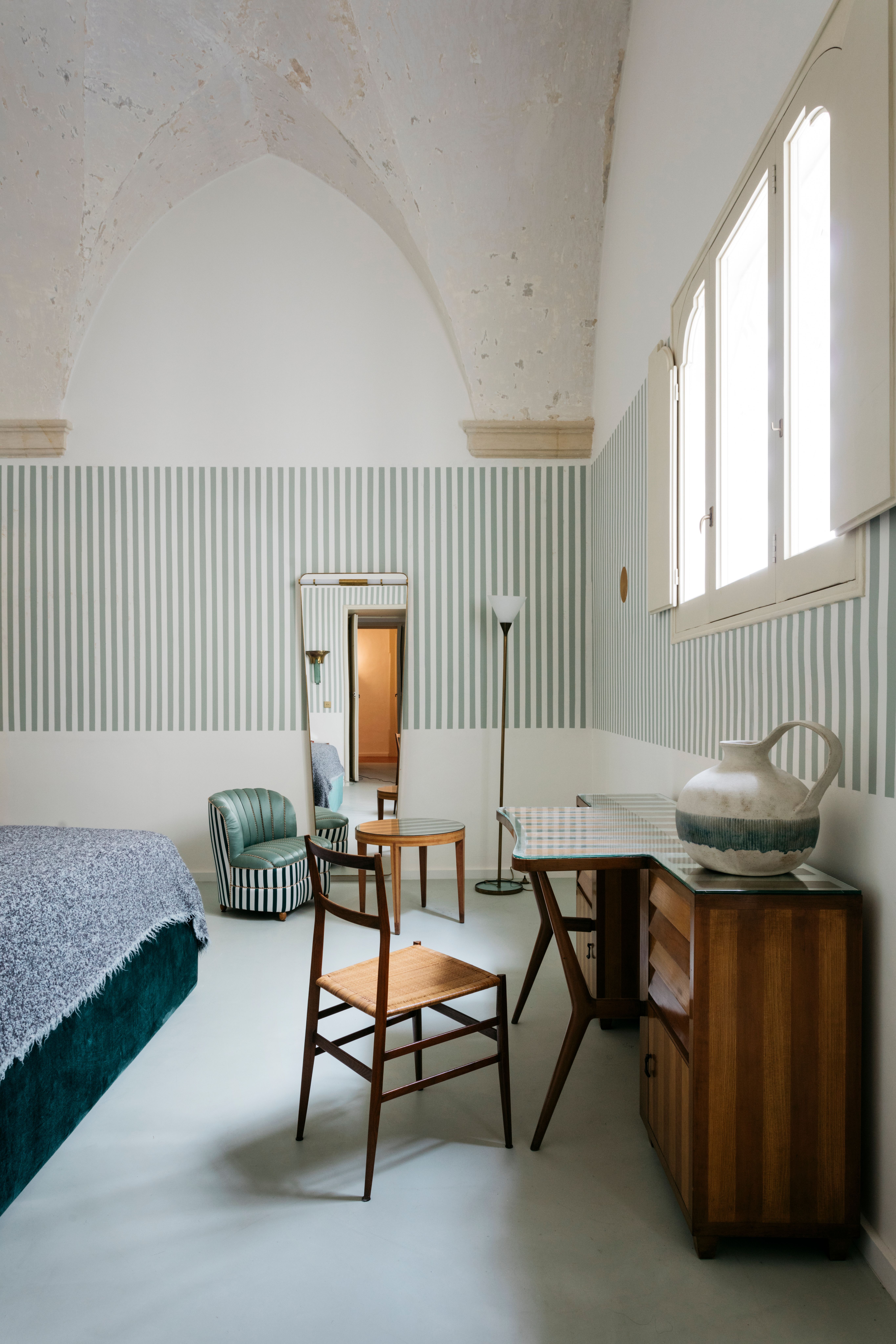 Anna Maria Enselmi has transformed the storied building into an art and design-filled residence inspired by the modernist legacy of Gio Ponti. Scattered everywhere around the hotel you can find a stunning collection of Ponti’s furniture, in dialogue with other icons of Italian modernism like Franco Albini, Ettore Sottsass and Ignazio Gardella.