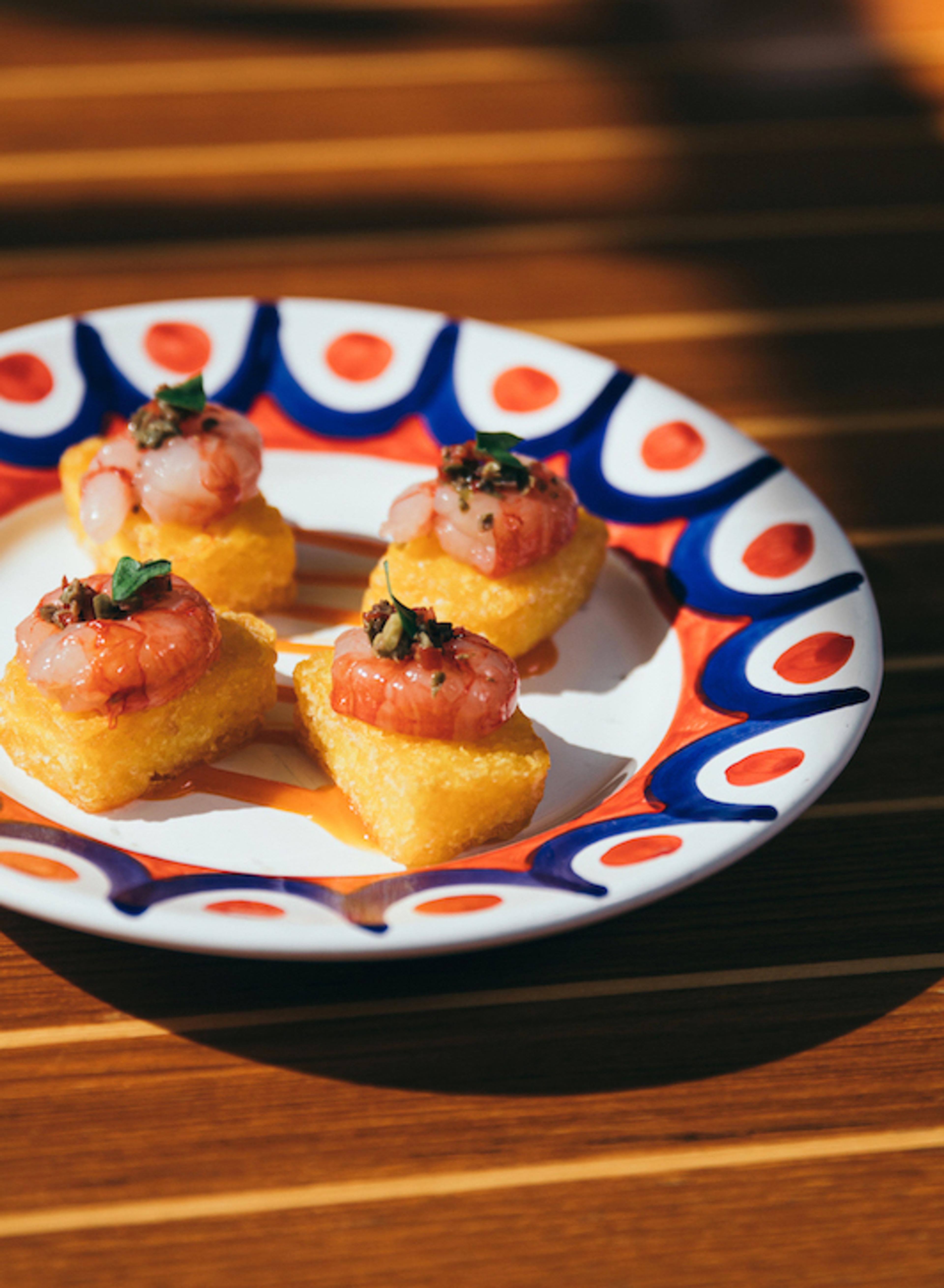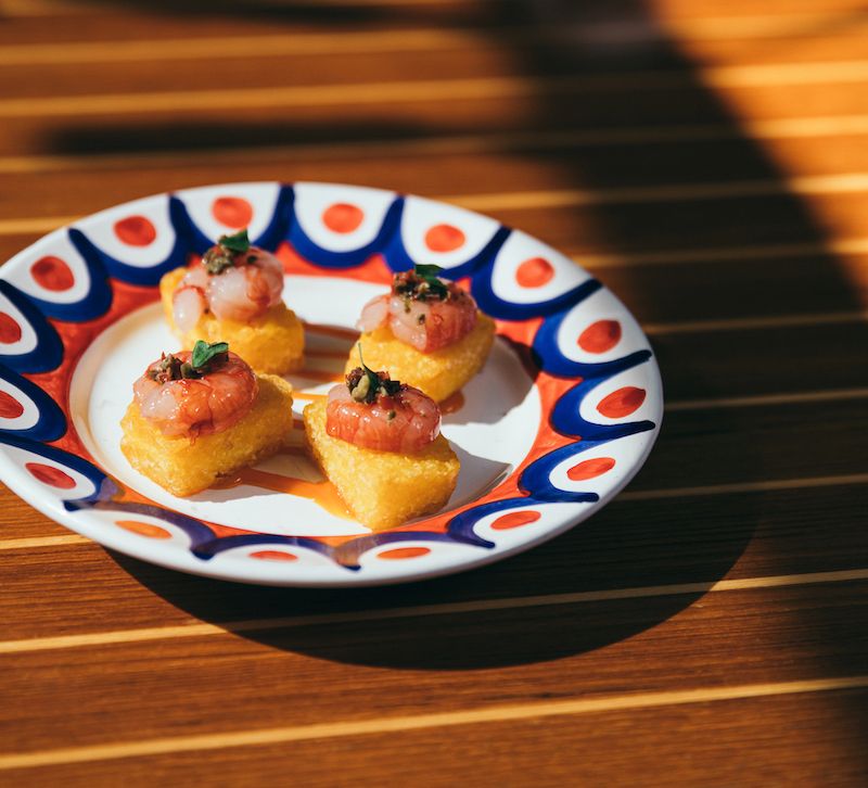 The restaurant concept, designed by founder Enrico Buonocore and renowned architecture and design studios, wants to reinterpret the refined Riviera style, with glamorous modern touches given by exquisite illustrations that decor each wall. The floors in teak wood and the large round mirrors in brass will immerse the guests into a sophisticated nautical atmosphere, perfectly in line with the location. Interiors feature a summer color palette: the recognizable orange was adapted to Bagni Fiori characteristic nuances, such as red, green and white. To complete the magical atmosphere, Langosteria's iconic air-balloons float from the ceiling thanks to the delicate sea breeze.