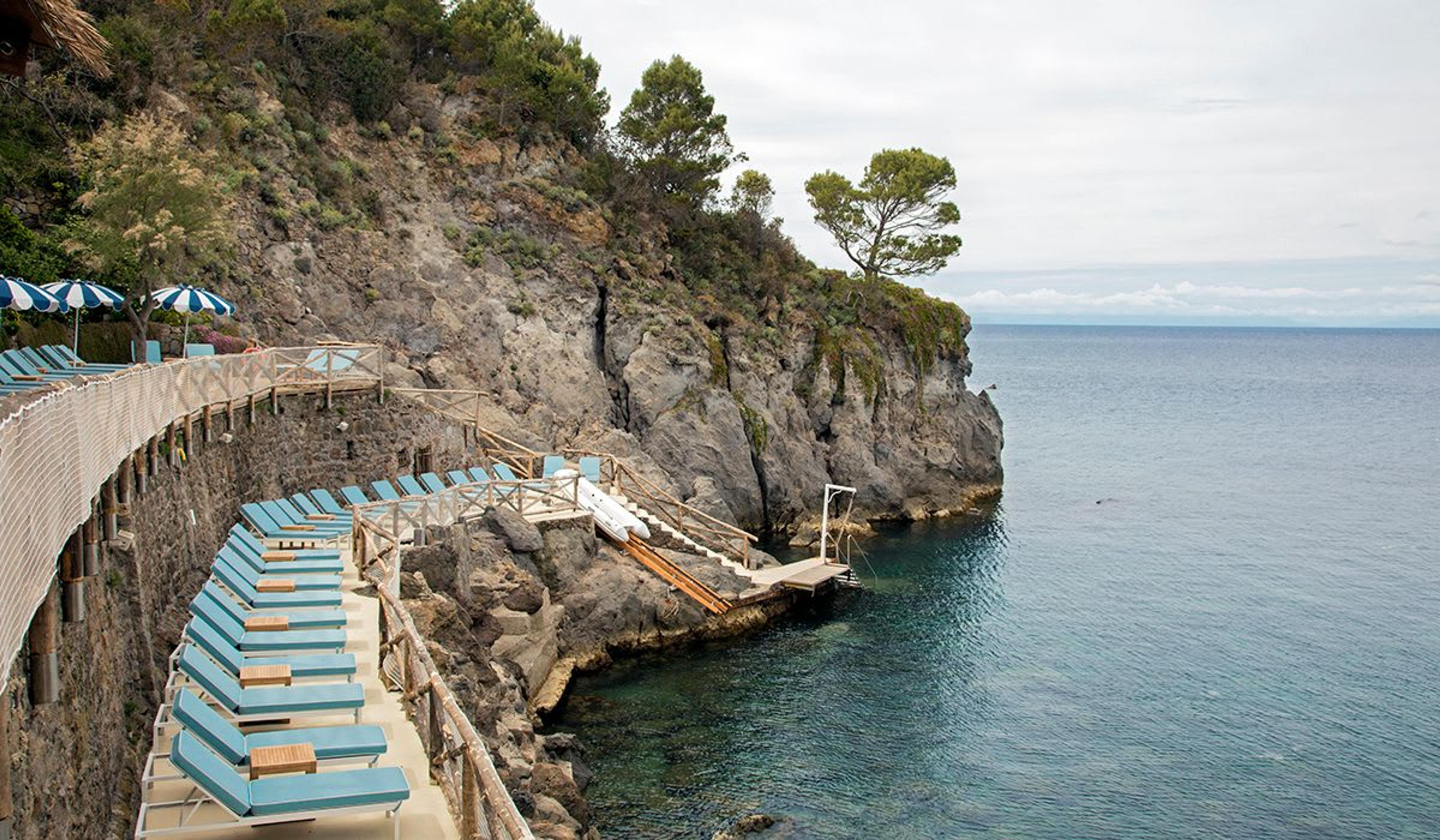 Overlooking the seascape from a rocky cliff, the Mezzatorre Hotel & Spa sparkles above a beautiful private bay, just a few minutes away from the two charming towns of Lacco Ameno and Forio. Located amid lush Mediterranean vegetation, this secluded castle of Mezzatorre has an ancient and fascinating history. The name “Mezzatorre” translates as a “Half Tower” and derives from the presence of an ancient Aragonese watchtower designed to ward off Saracen pirates, that remained unfinished. The initial structure of Mezzatorre Hotel & Spa was first established in the ’80s by the De Lorenzo family before passing ownership over to the Pellicano Group, an international network of luxury hotels.