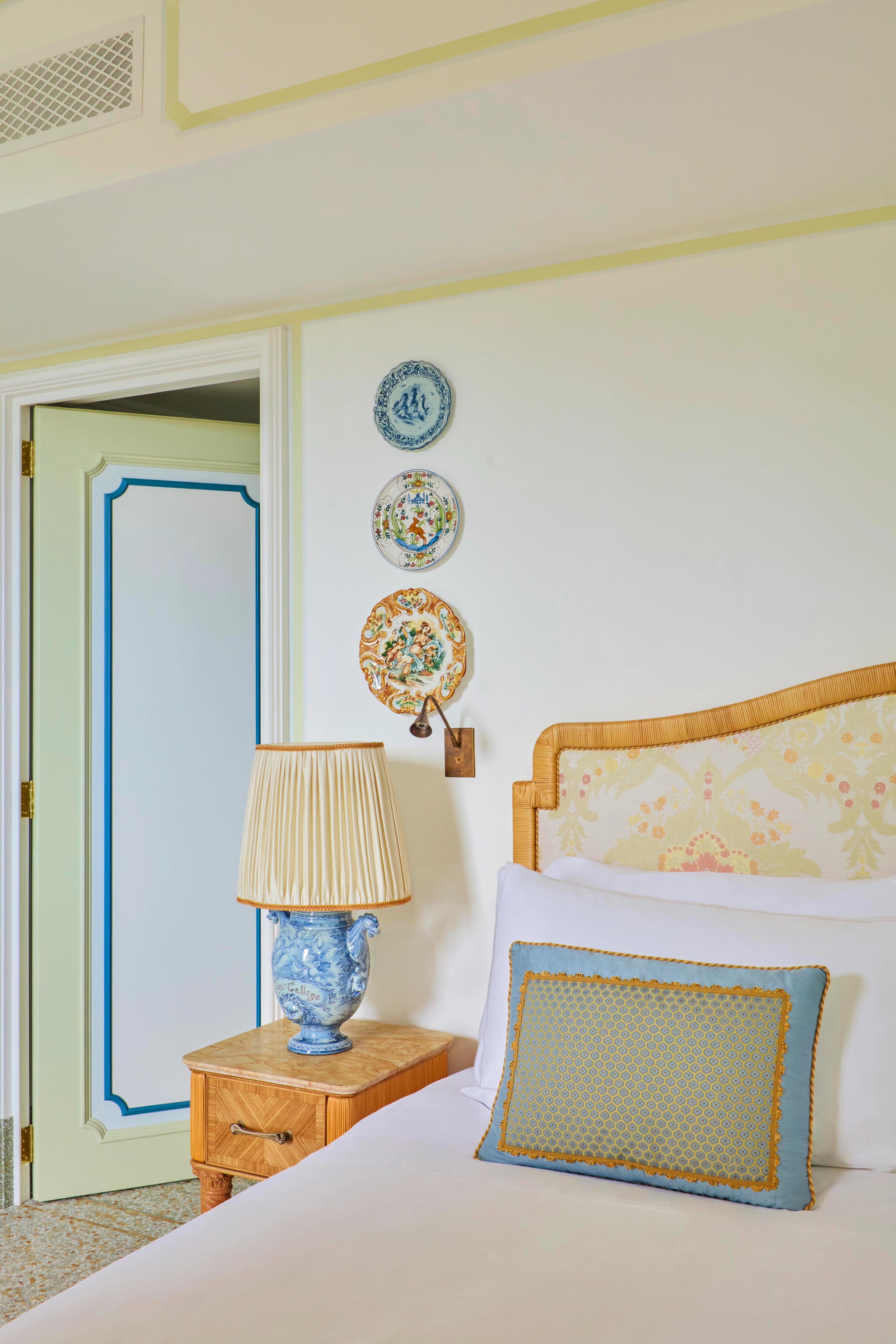 Upon entering the redesigned lobby, guests are greeted by a sensorial tribute to Liguria’s natural beauty and layered history. Local artisanship takes center stage: hand-painted botanical frescoes, custom terrazzo flooring in the Genovese style, and carved details in Carrara marble and Lavagna stone. These are not mere decorative accents, but an intentional dialogue between the materials of the region and the timeless elegance of the Italian Riviera.