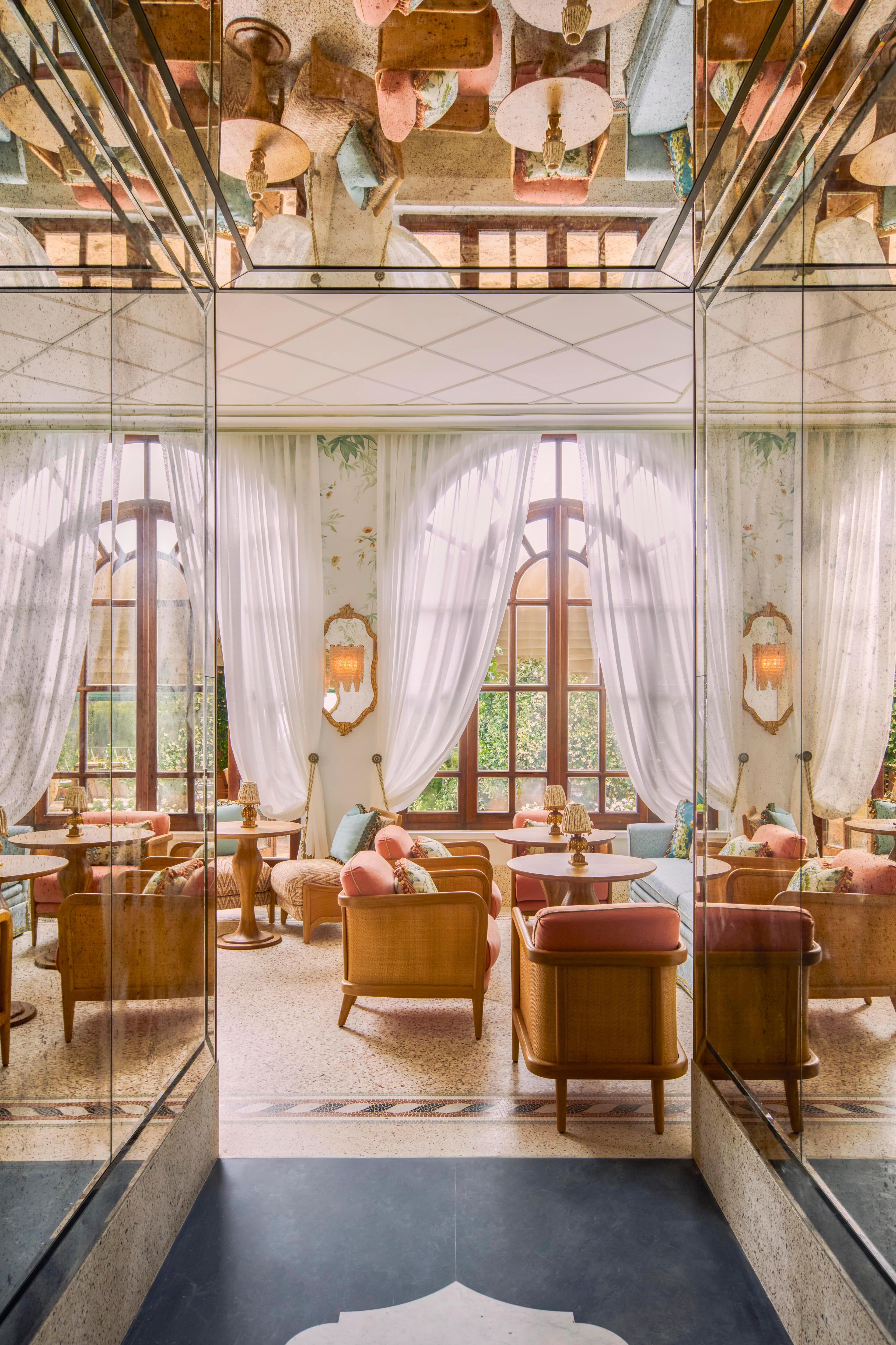Taking its name from the hotel’s address, Bar Baratta Sedici is more than a bar: it’s a new social and aesthetic focal point for Splendido. The space captures the essence of indoor-outdoor living, with lime-washed walls, cascading greenery, and a dramatic hand-painted botanical mural that reflects the lush gardens just beyond its doors.