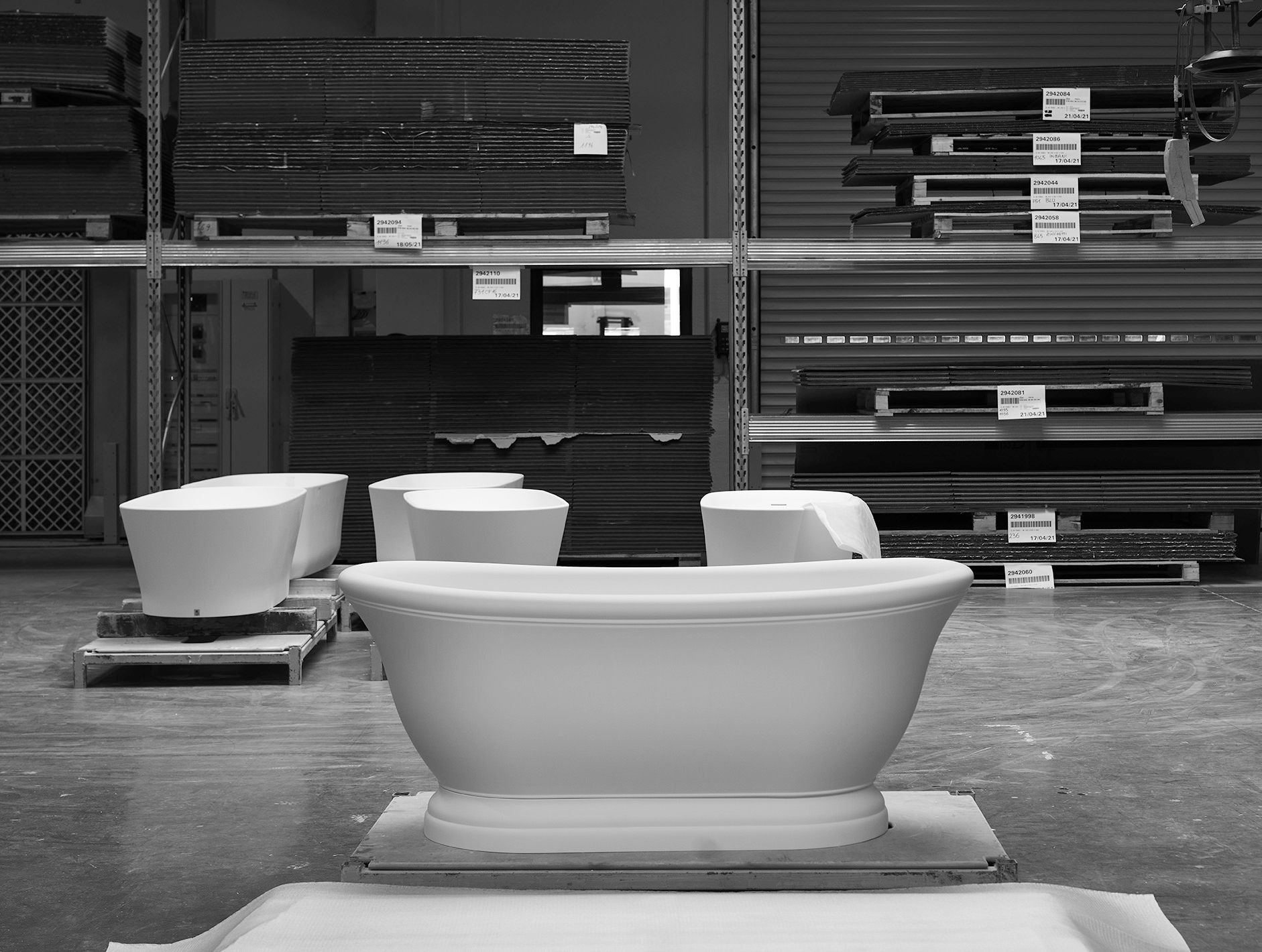 What is the step-by-step process of making a bathtub, from its conception to the finished piece? How does this object reflect the work of the craftsmen who contributed to its creation?