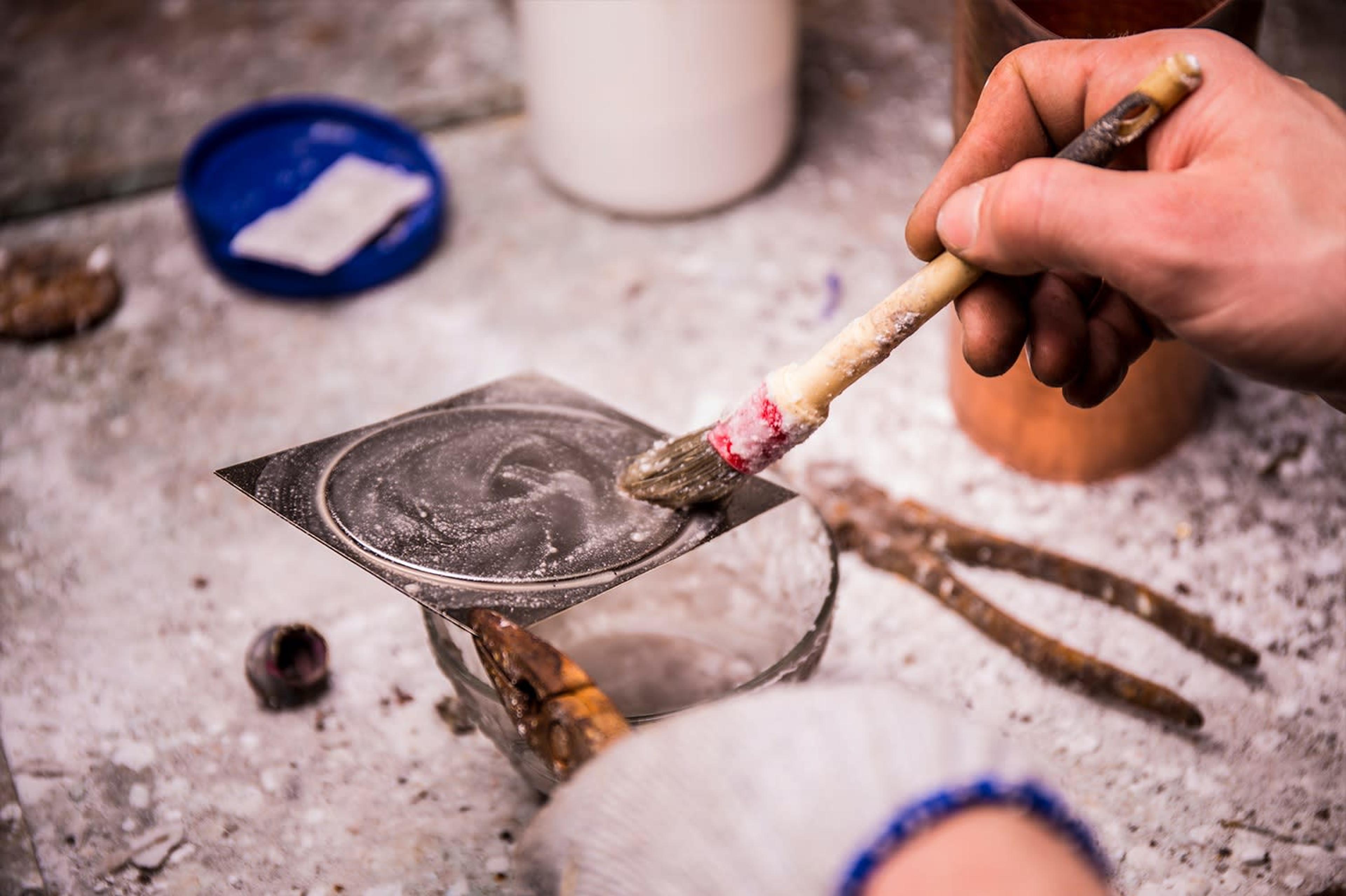 It starts with a simple flat metal plate, to which the desired shape is given with suitable tools and a lot of skills, and the components that complete it are later applied. Once the piece is made, it proceeds to the cleaning phase to remove any processing residue and for polishing. The final stage consists of silvering, which makes the object bright and shiny, ready to be packaged in elegant boxes.