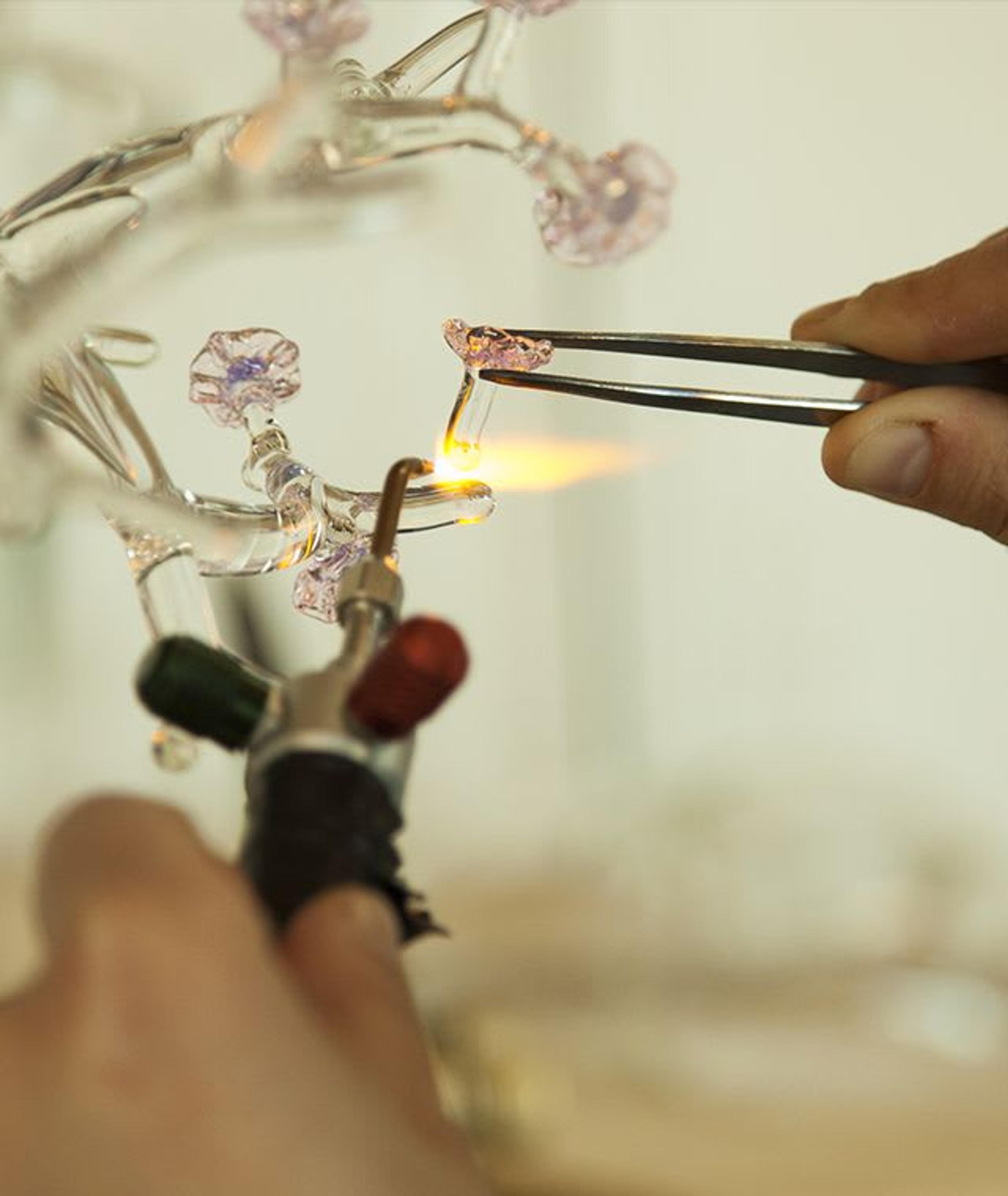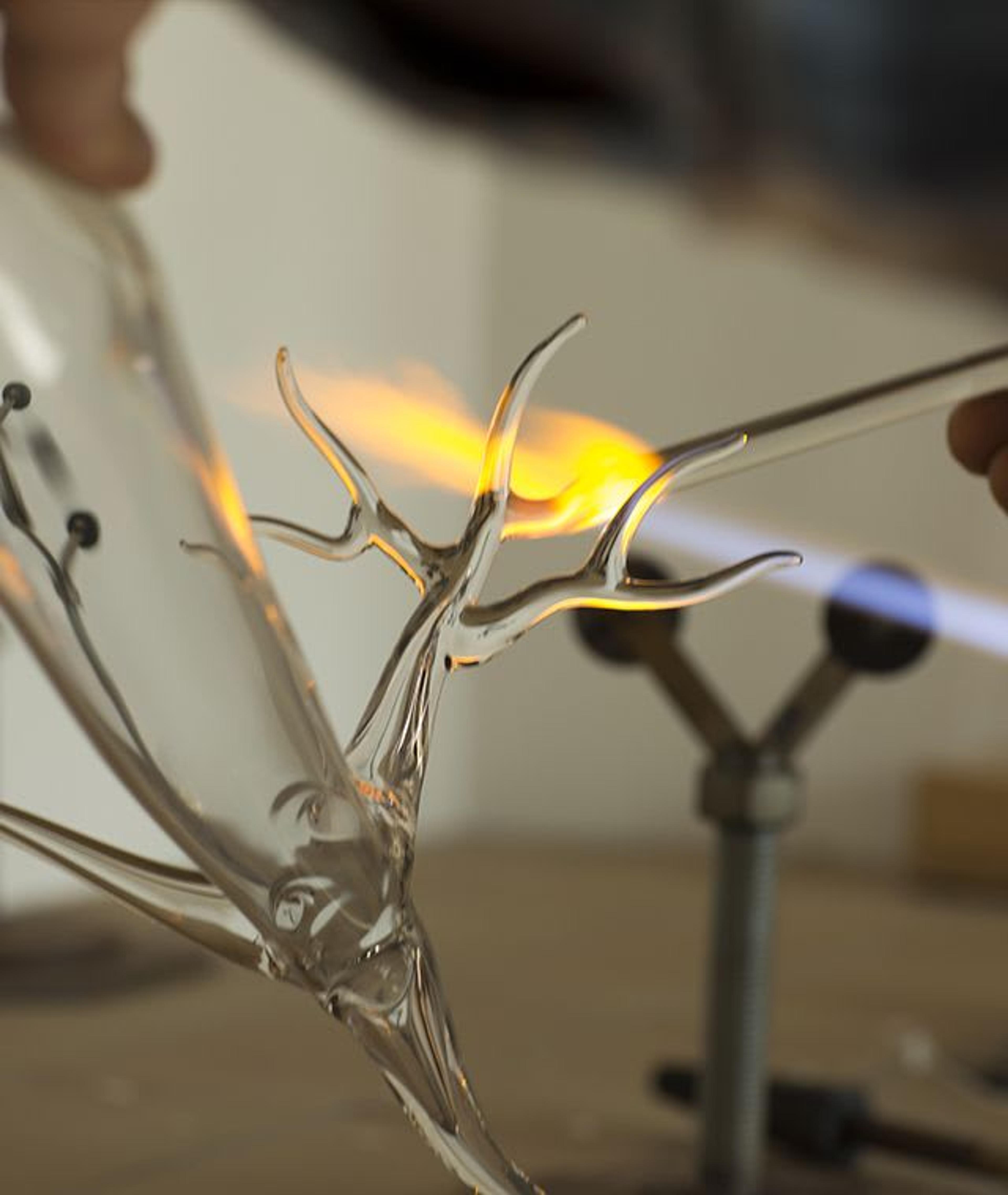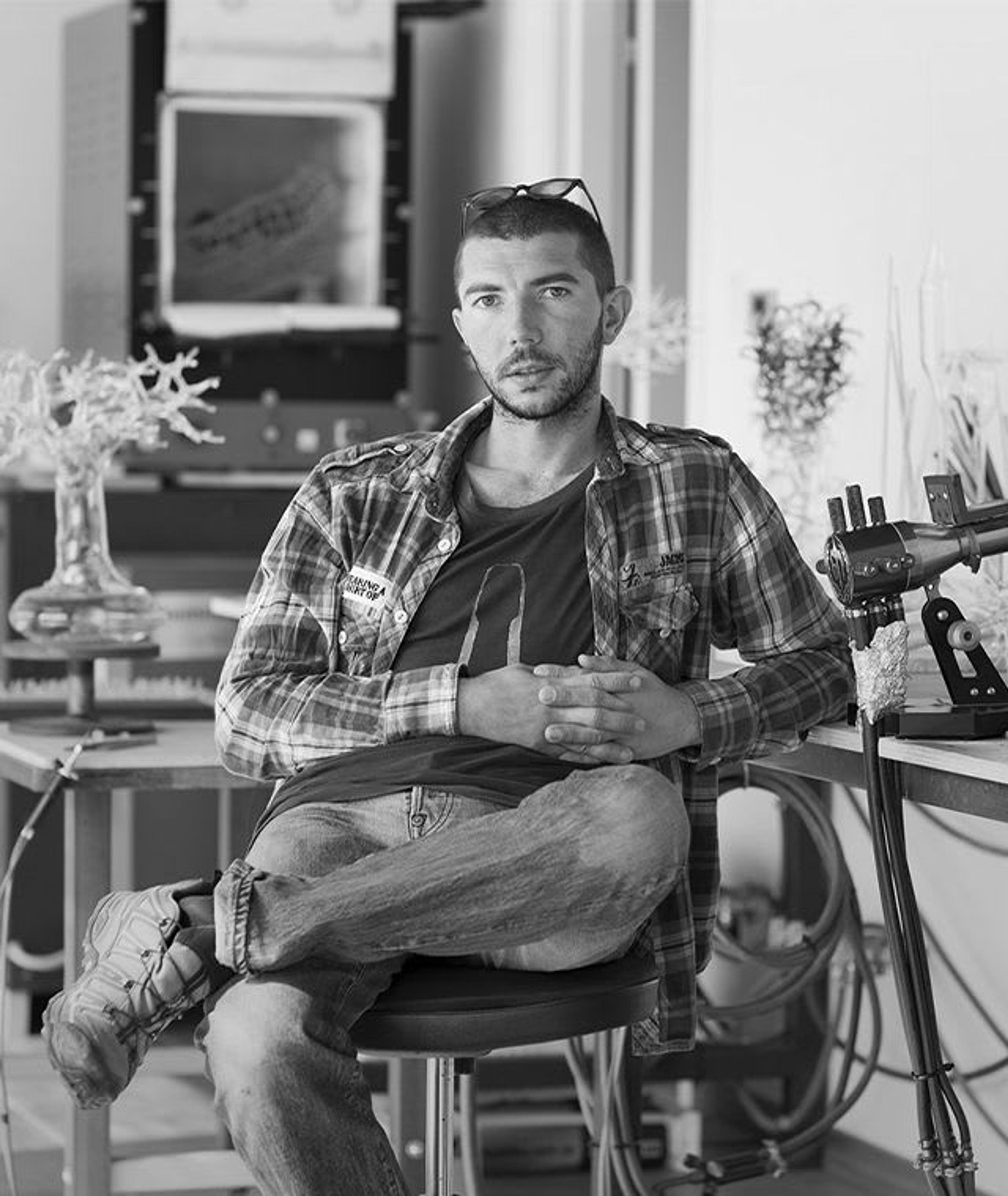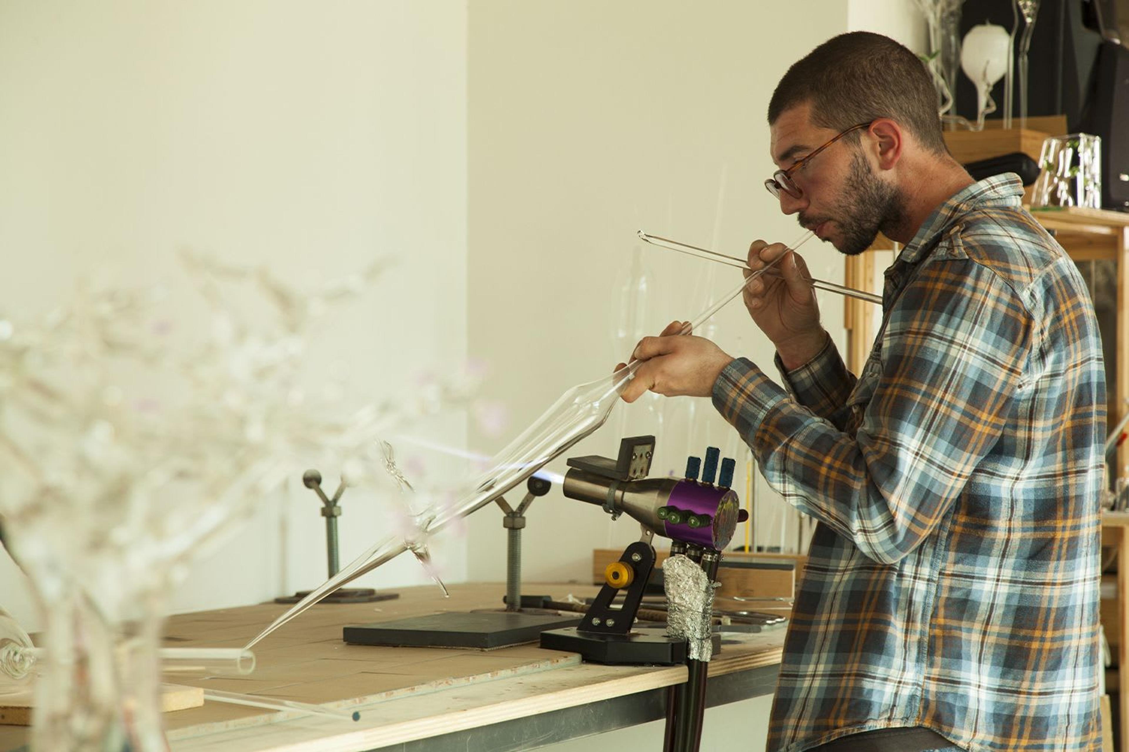 Simone Crestani is a glass designer and artisan, considered a young luminary when it comes to glass crafstmanship. By growing up close to Venice, he absorbed the ancient art of glassmaking since a very young age, and trained with expert glassmith Massimo Lunardon to refine his skills and creations. His pieces are unmistakable and unique: ironic, balanced and elegant, inspired by nature.