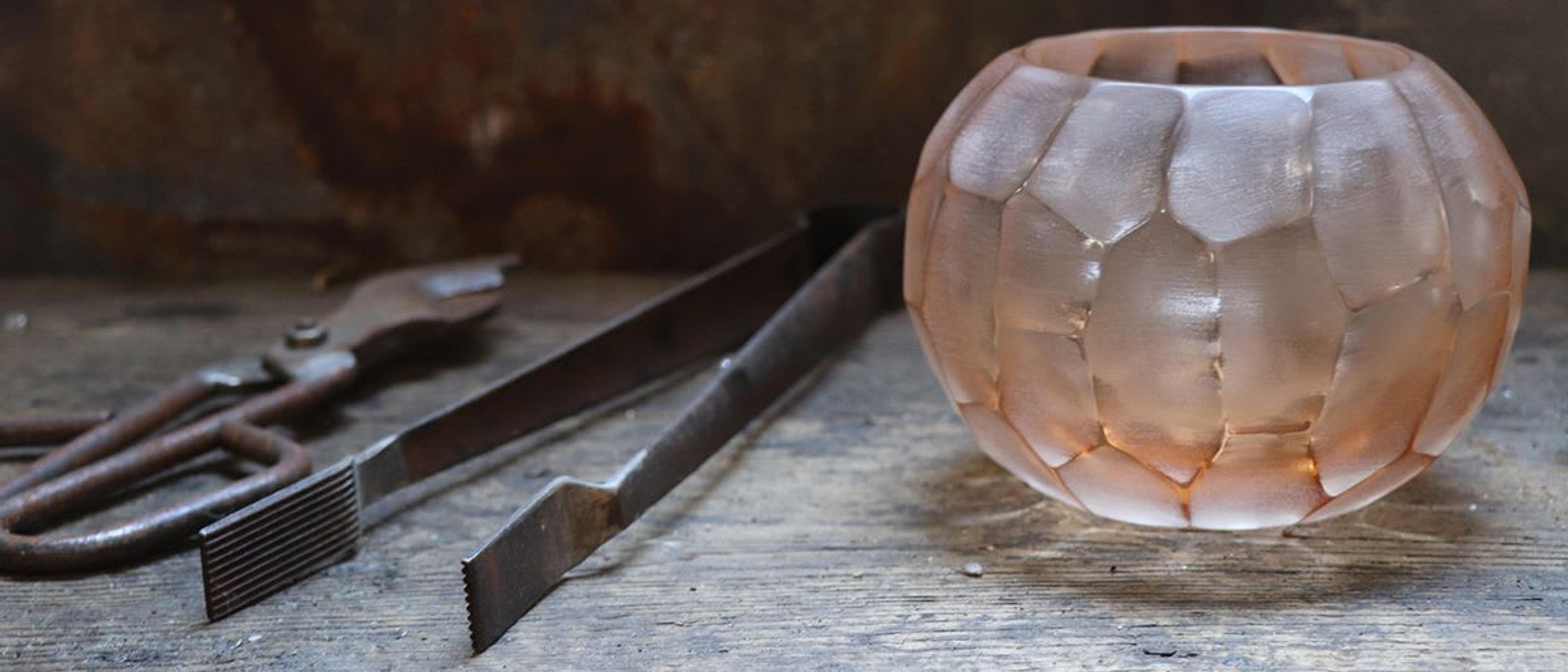 Inspired by the shades and hues of the Venetian canals, vases and glasses created by Elena and Margherita are defined by vibrant and faceted surfaces as well as iridescent sheens which play with the visual and tactile perception of glass.