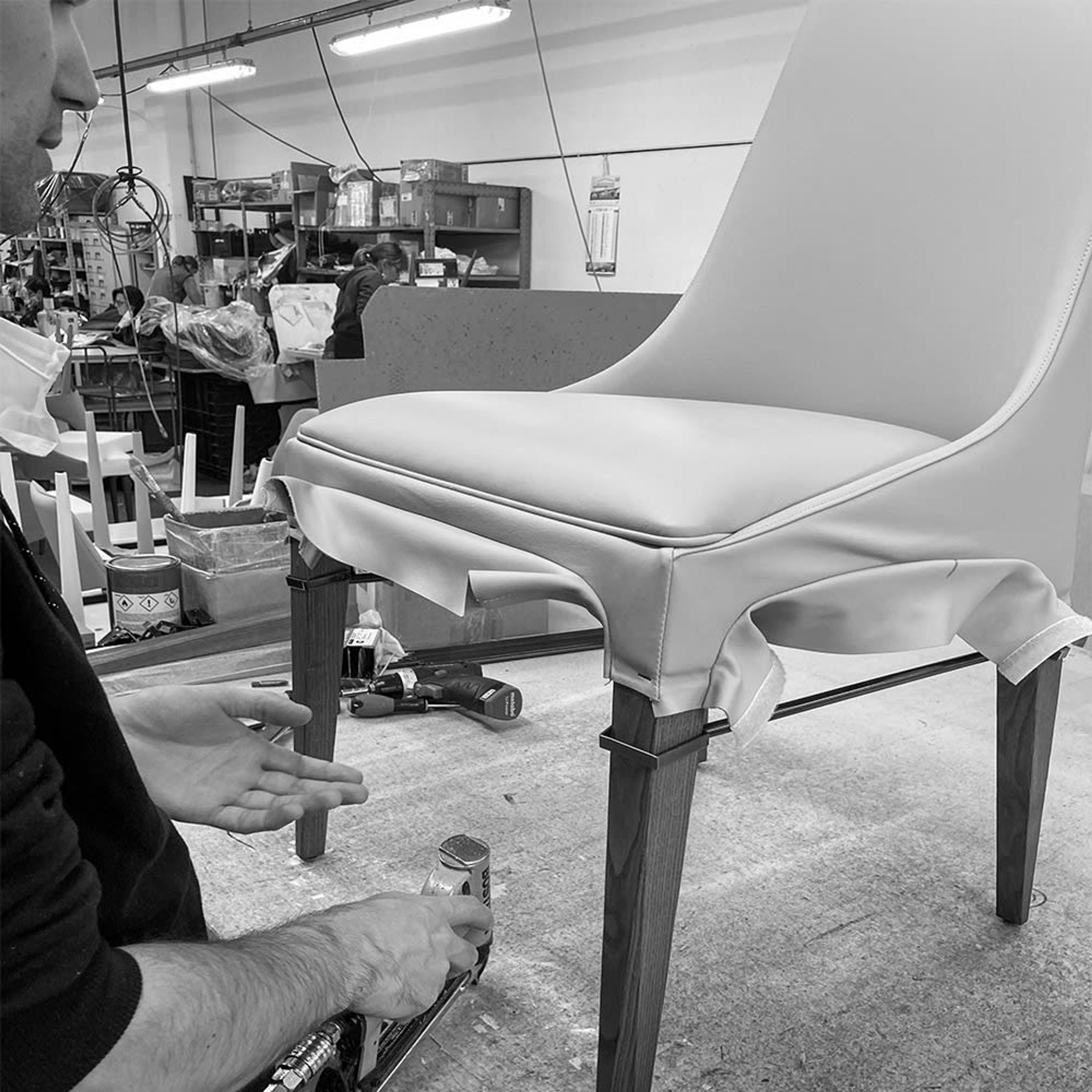 The company is located in the heart of the Asolo hills and specializes in the production of chairs and furnishing accessories upholstered in leather, leather, eco-leather and fabrics, using only carefully selected and certified materials, all produced in Italy.
