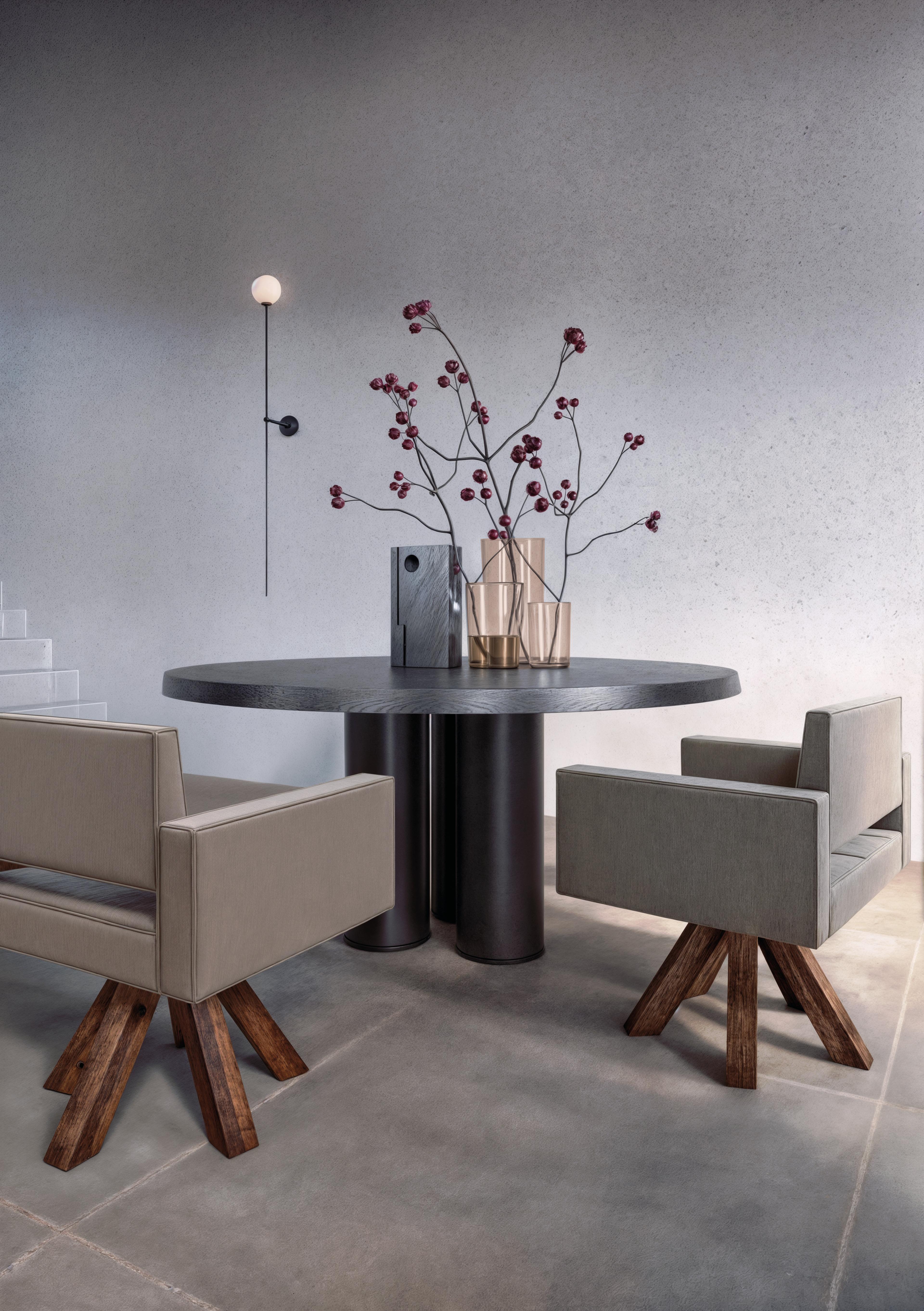 Hemo’s products stand out for several qualities that make them unique and highly appreciated. Each piece is crafted with meticulous attention to detail, reflecting the artisanal excellence of Brianza. The craftsmanship is entirely "Made in Italy," ensuring high standards of quality and durability. Hemo combines innovative shapes with timeless aesthetics, creating furniture that is both modern and classic. Ongoing research and the use of modern technologies allow us to develop products that meet contemporary needs while maintaining a distinctive style. High-quality materials are used, carefully selected for their beauty and uniqueness. For the new collection, designed by Studio Dainelli, we wanted to focus on the materiality and beauty of nature. This includes the use of rare woods, such as Palm wood, with which we created limited edition versions of our Portante table, as well as other special materials like solid Travertine or acid-treated metals.