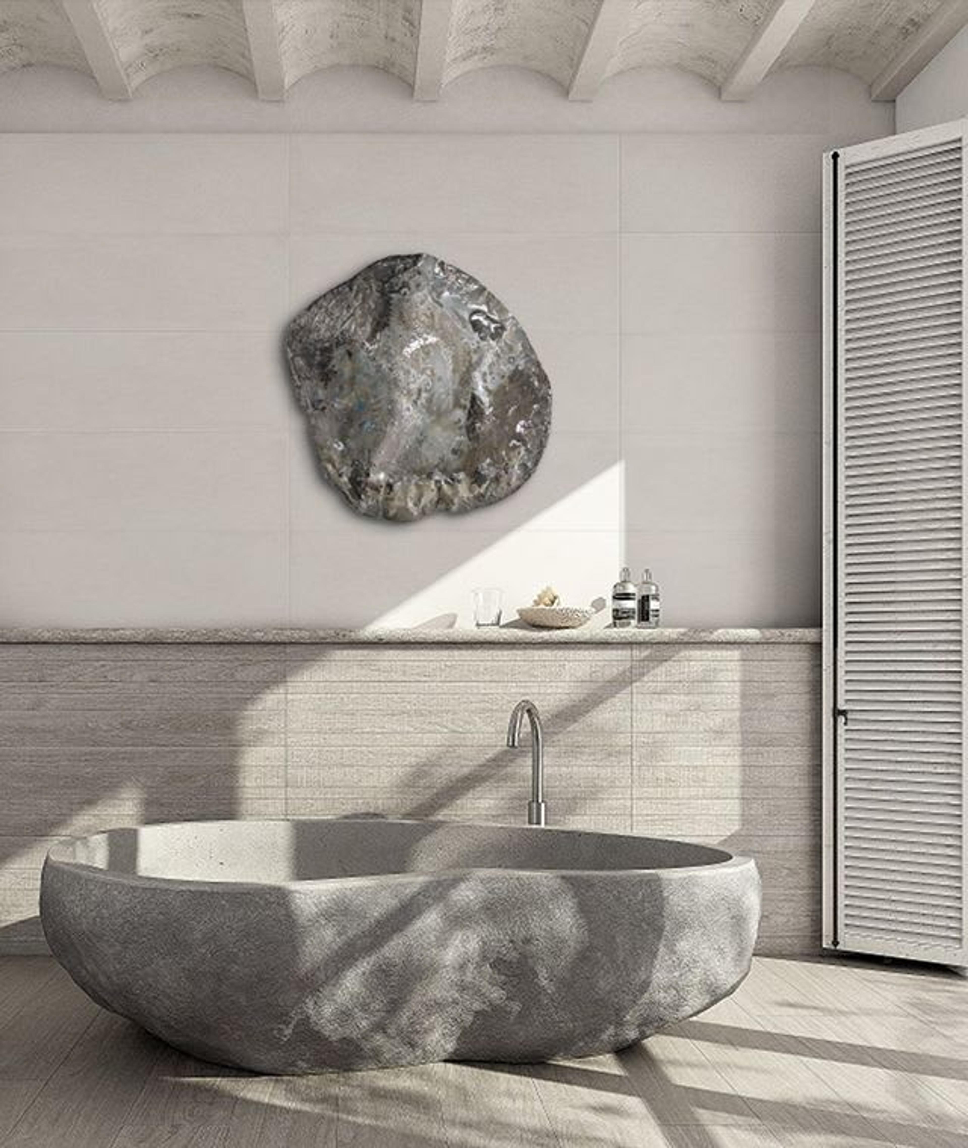 Ours is a brutalist and textured style that seeks for a nature-inspired aesthetic, sculpted by a human gesture that is both random and premeditated. We want to create a forceful piece of nature, which is shaped by human hands into a contemporary design, boasting a unique expressivity often obtained with unusual chemical processes. Our philosophy is that of a feasible contemporary nature that provokes emotions for contemporary and future homes.