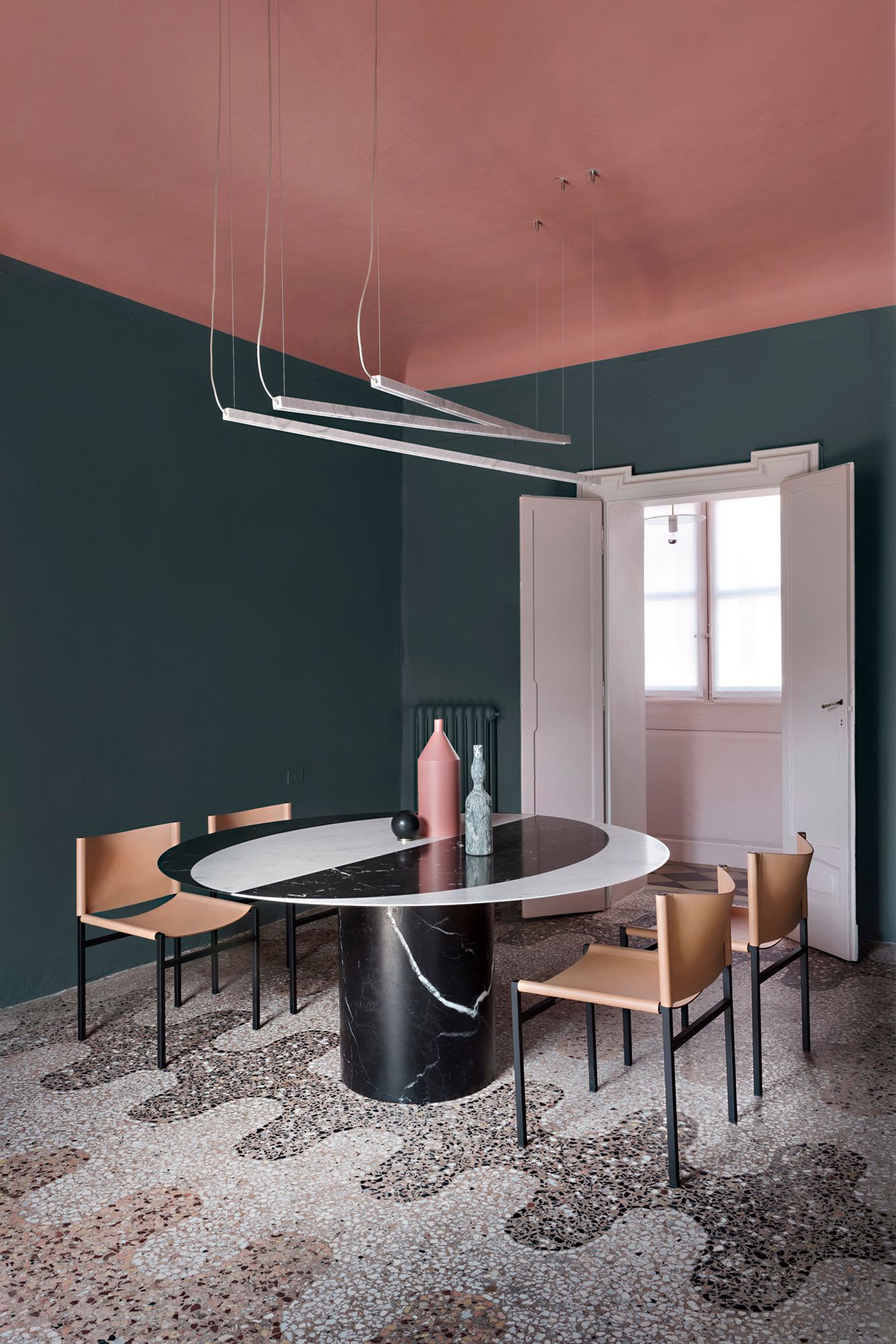 I like spaces that do not represent reality too closely. Art is an inspiration in this sense: when I design a space I elevate it to a mere abstraction, I like it to be suspended and dreamlike.