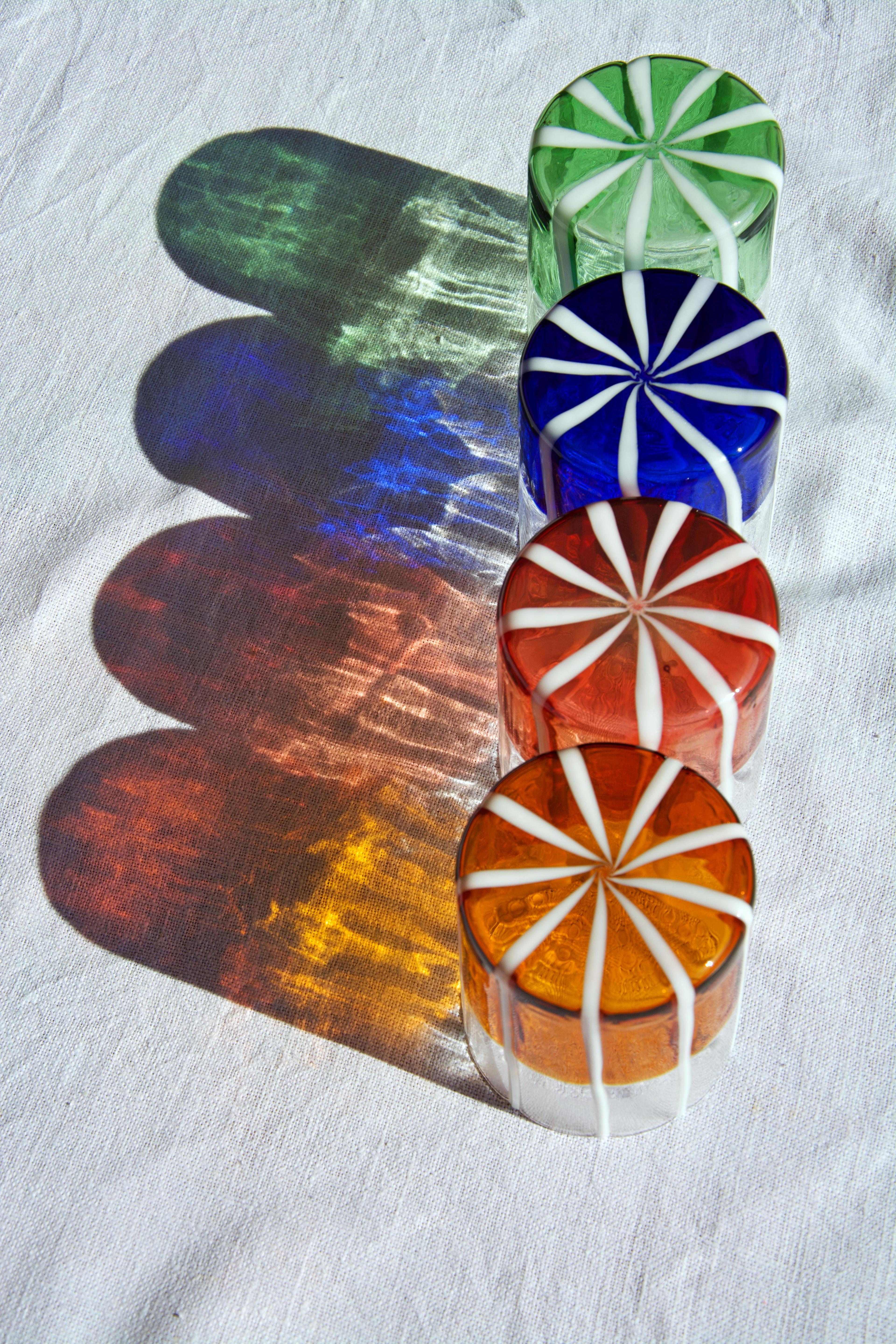 To create the perfect glasses set for your interiors, explore a selection of pieces all designed and handcrafted by highly talented makers. Don't miss the wide variety of shades that characterizes Creart, the vividness of Tuttoattaccato's colorful glass, the modern elegance of Casarialto's works, Vaporetto's unique designs, Vio's Cooking delicate shapes and so much more.