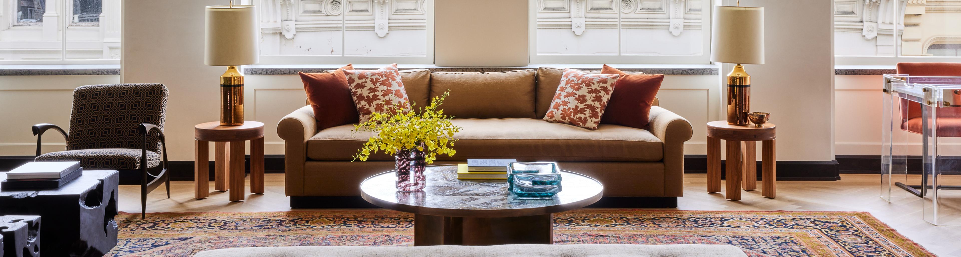 Nestled within a cast-iron building in Manhattan’s iconic SoHo neighborhood, this multi-level residence is rich in personality and character. Drawing inspiration from the client’s distinctive vision, the design integrates thoughtful choices from paint colors to bespoke furnishings and artwork, resulting in a space that feels both intricate and harmonious. Soft textures and carefully considered architectural details provide a grounding backdrop throughout the home. Warm plaster subtly enhances the walls, while gentle archways carve out different areas of the loft. A curved, custom-designed railing frames the staircase, and a rounded custom headboard in the primary bedroom fosters a sense of tranquility. In the dining room, a radius ceiling softens the space, subtly defining it while visually separating it from the adjacent living area.