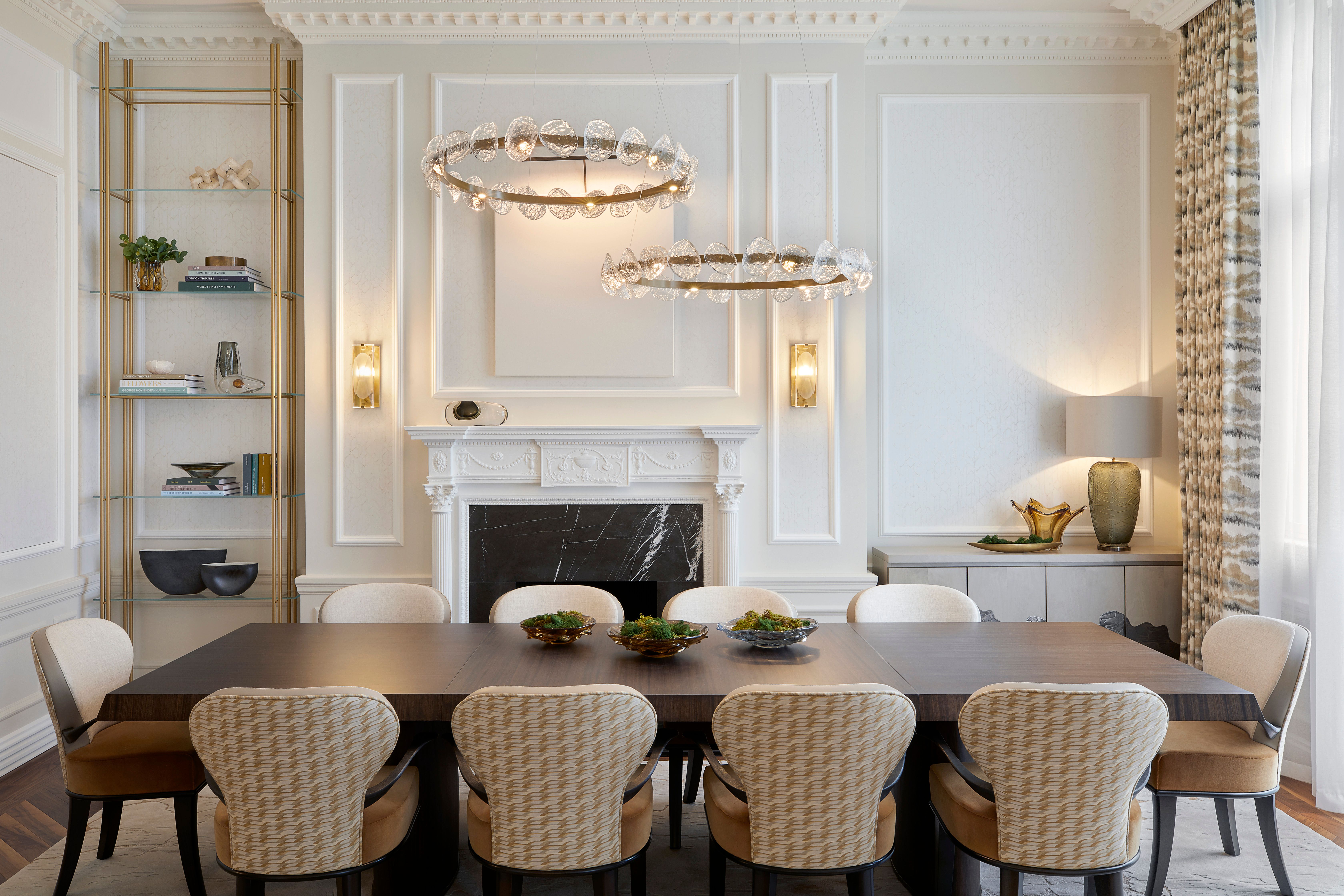 The interior renovation project of the apartment at Harcourt House involved the complete transformation of a 2000 square foot apartment. The project included a partial refurbishment of the apartment, and the design incorporated high-end finishes and materials, such as hand painted silk wallpapers, custom artisan furniture and bespoke lighting. The color scheme was carefully chosen to create a warm and inviting atmosphere, while highlighting the architectural features of the space. The final result is a luxurious and stylish space that reflects the clients’ personal style and taste, while also incorporating the unique charm of the Harcourt House building.