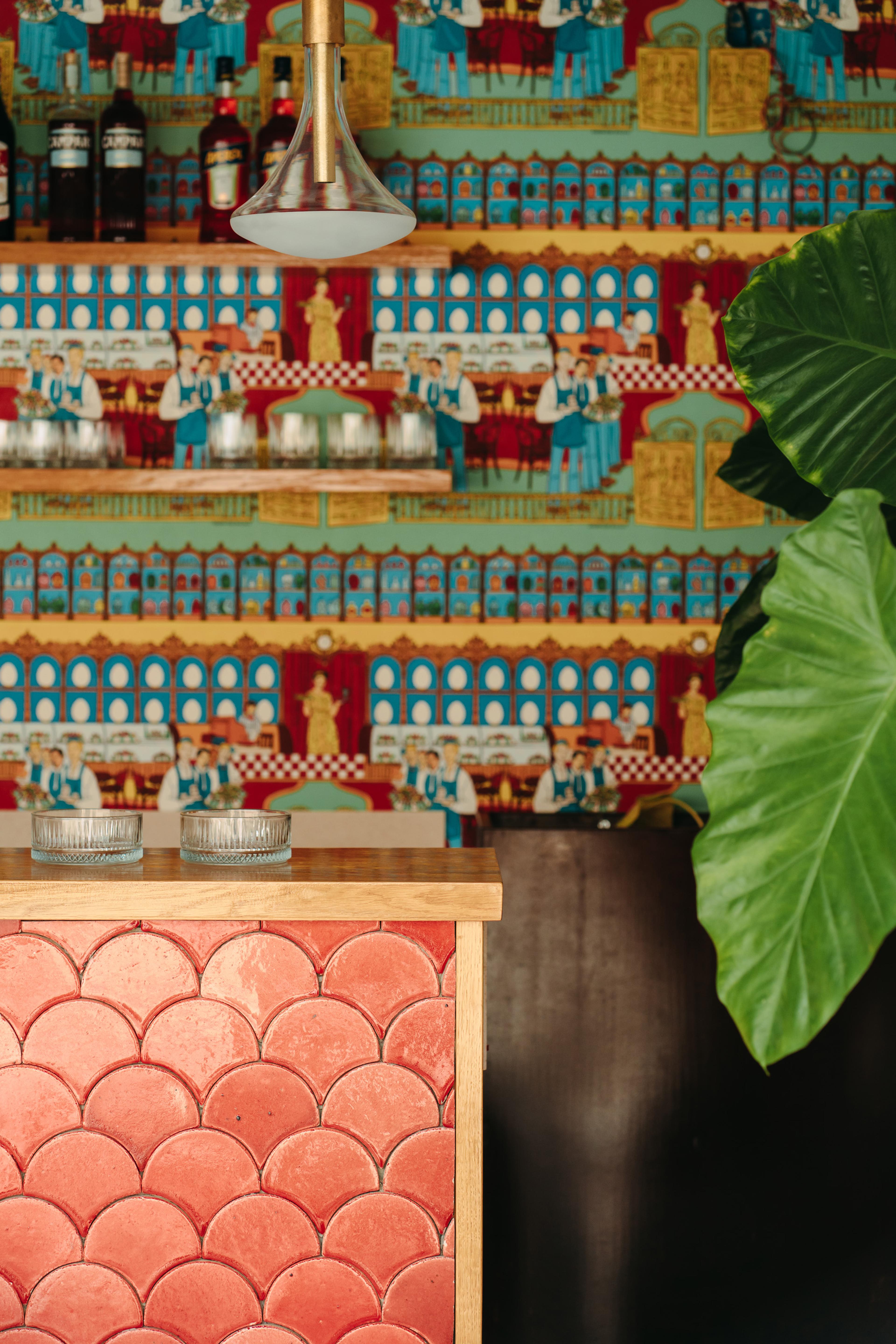 The Braccialieri Café is enveloped in wallpaper from the Enriquezland collection: a whimsical collaboration with Jannelli & Volpi that features traditional Sicilian pastries in pop-art fashion. Just steps away, the restored winery, Dodici Zappe, serves as the beating heart of the property. Here, guests enjoy dishes that highlight local, organic ingredients.