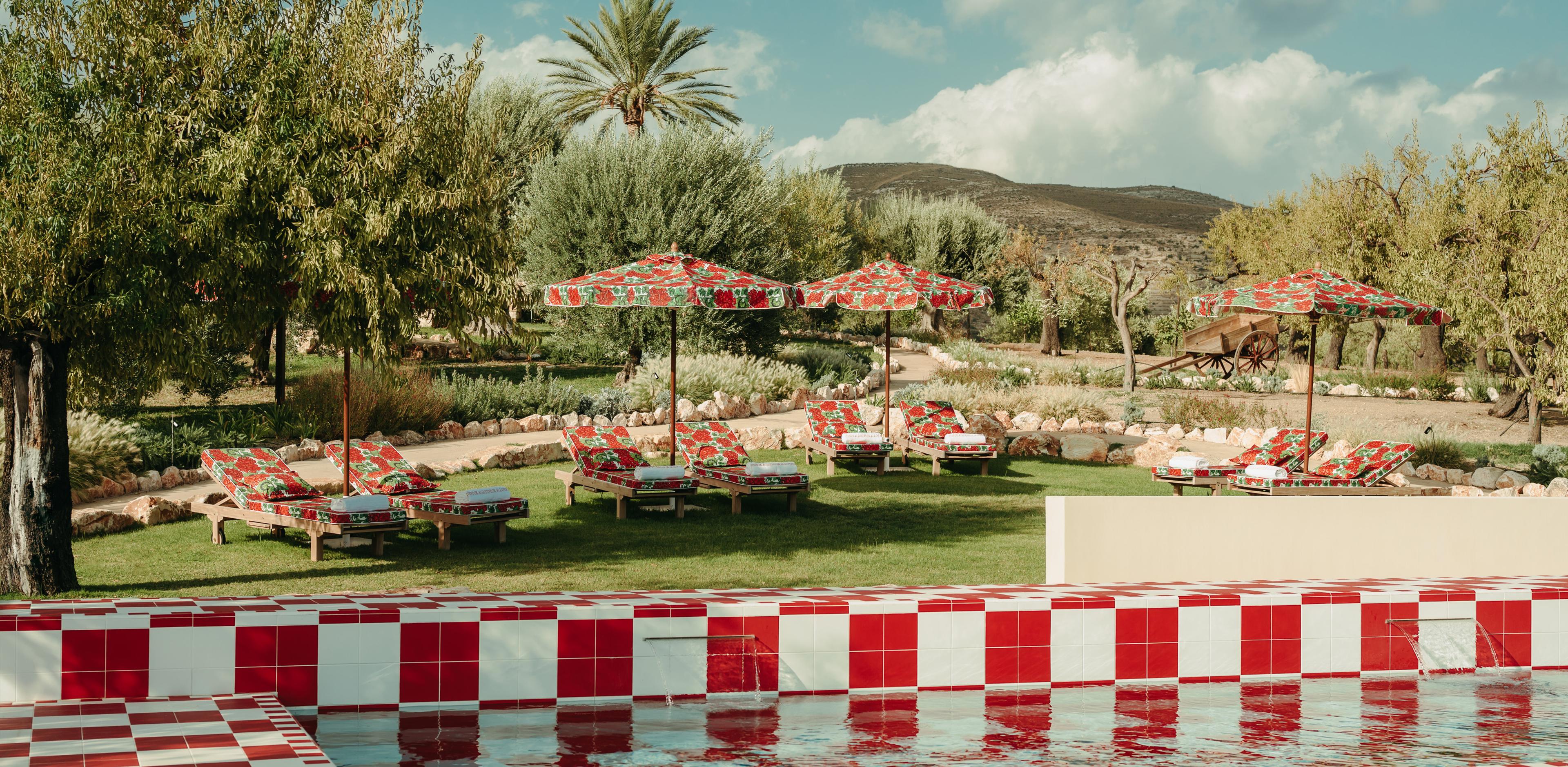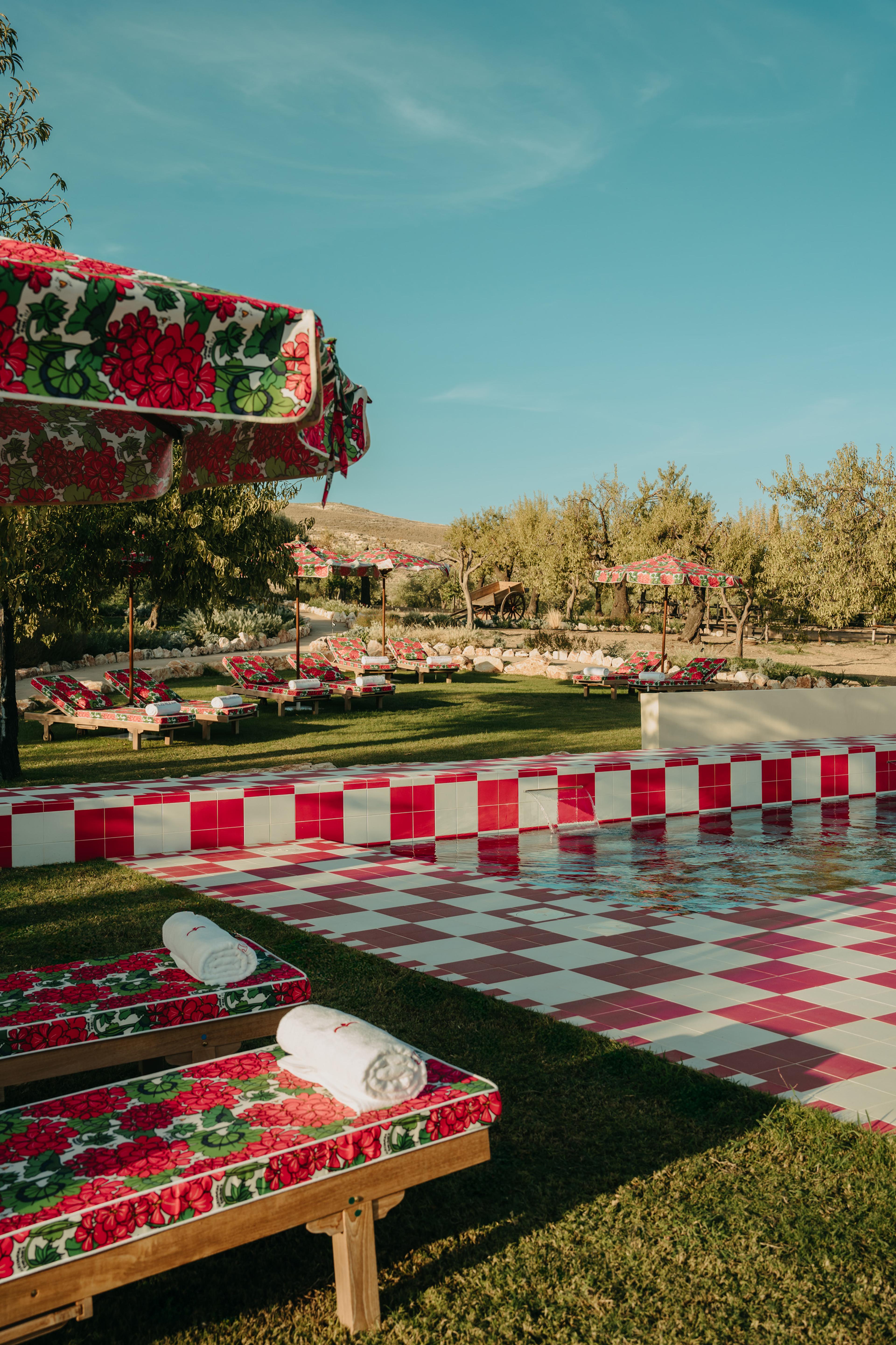 At Braccialieri, every element is a love letter to Sicily: the chequered red-and-white tiles in the swimming pool with the “Don’t forget to love!” motto engraved on it, and sun loungers in colorful geranium print invite guests to linger in the moment.