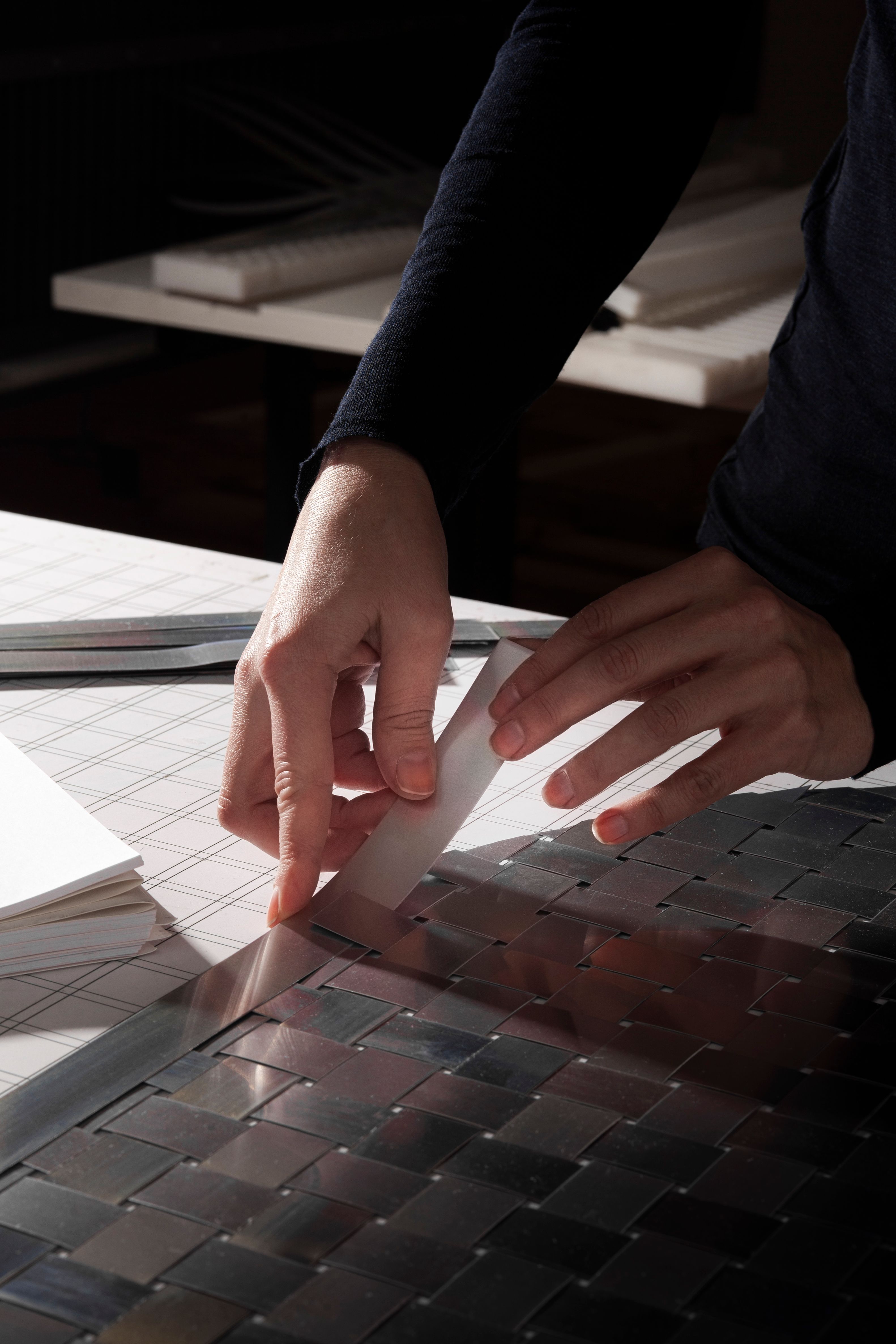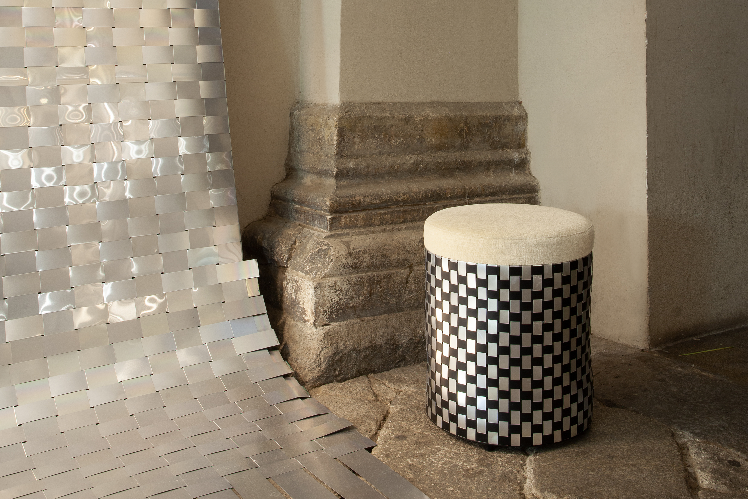 First of all, what is perceived as simple actually conceals an intricate development made up of experimentation, refinement and dedication.As I mentioned before, SPLOT comes from aluminum sheets coming from industrial waste. Creating a design object means creating a new design process, therefore moving away from the dimension of pure craftsmanship, from the "inspired" creation of a unicum, in favor of the conception of a method.Since these are recycled materials, behind the manufacturing of SPLOT there are hundreds of hours dedicated to perfecting the process: from the treatment of aluminum to its cutting, from painting or printing techniques to the search for the single weave - different from collection to collection, sometimes tailor-made.