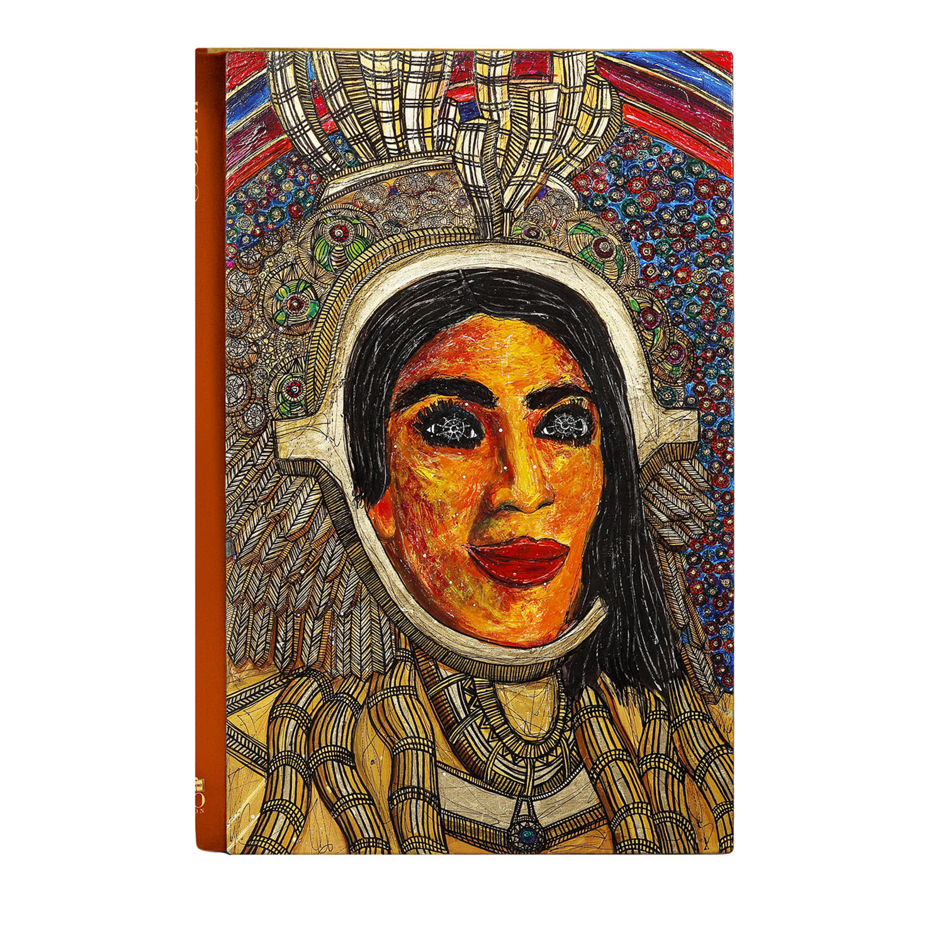 Cenicero de cuero Galuchat marrón decorado