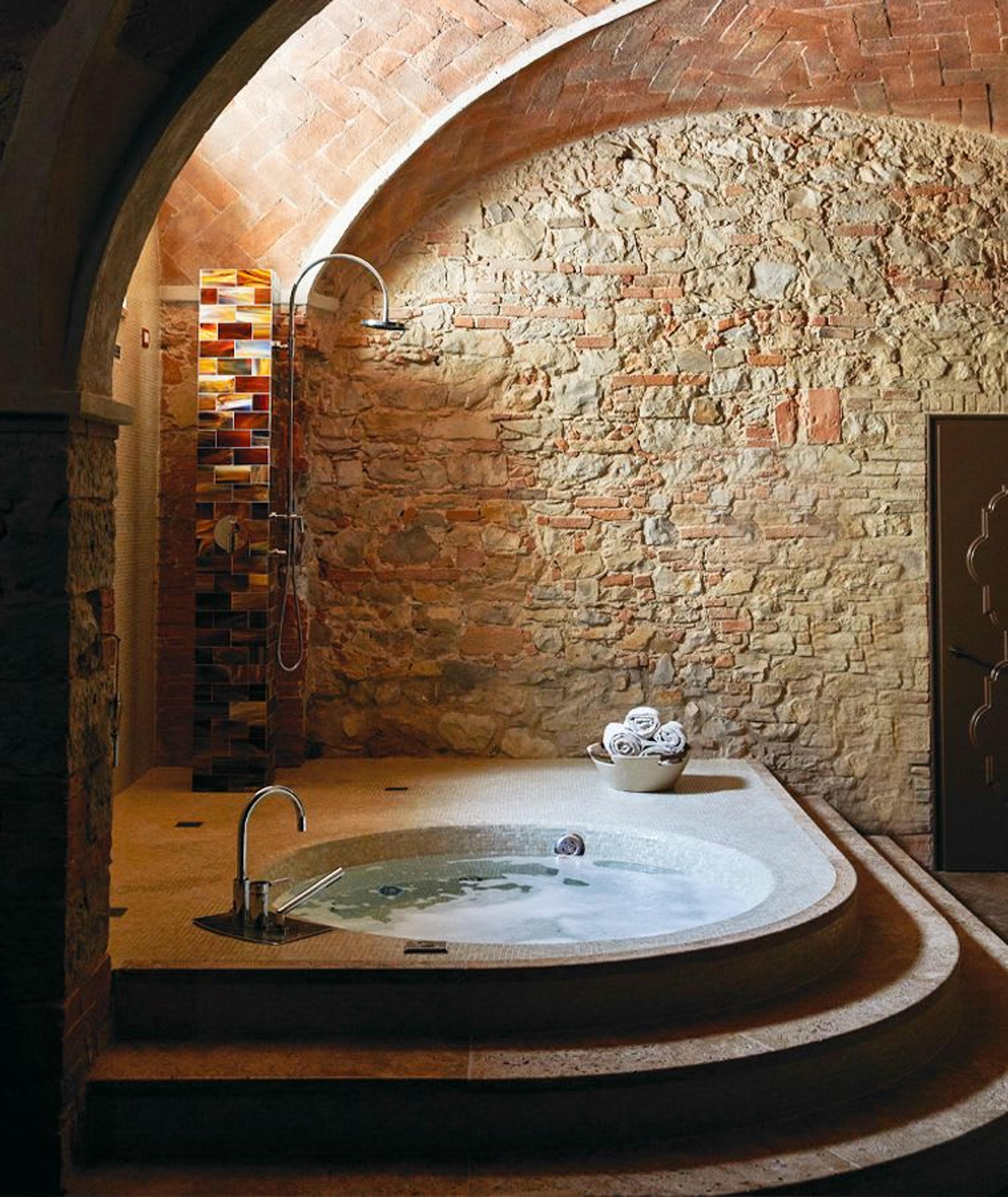 Al entrar en el castillo, el huésped siente las vibraciones de un lugar donde el tiempo se ha detenido, y se puede vivir la perfecta fantasía italiana. Cada espacio se ha restaurado minuciosamente utilizando los materiales originales de la finca, con detalles antiguos, techos con vigas de madera y paredes de piedra.