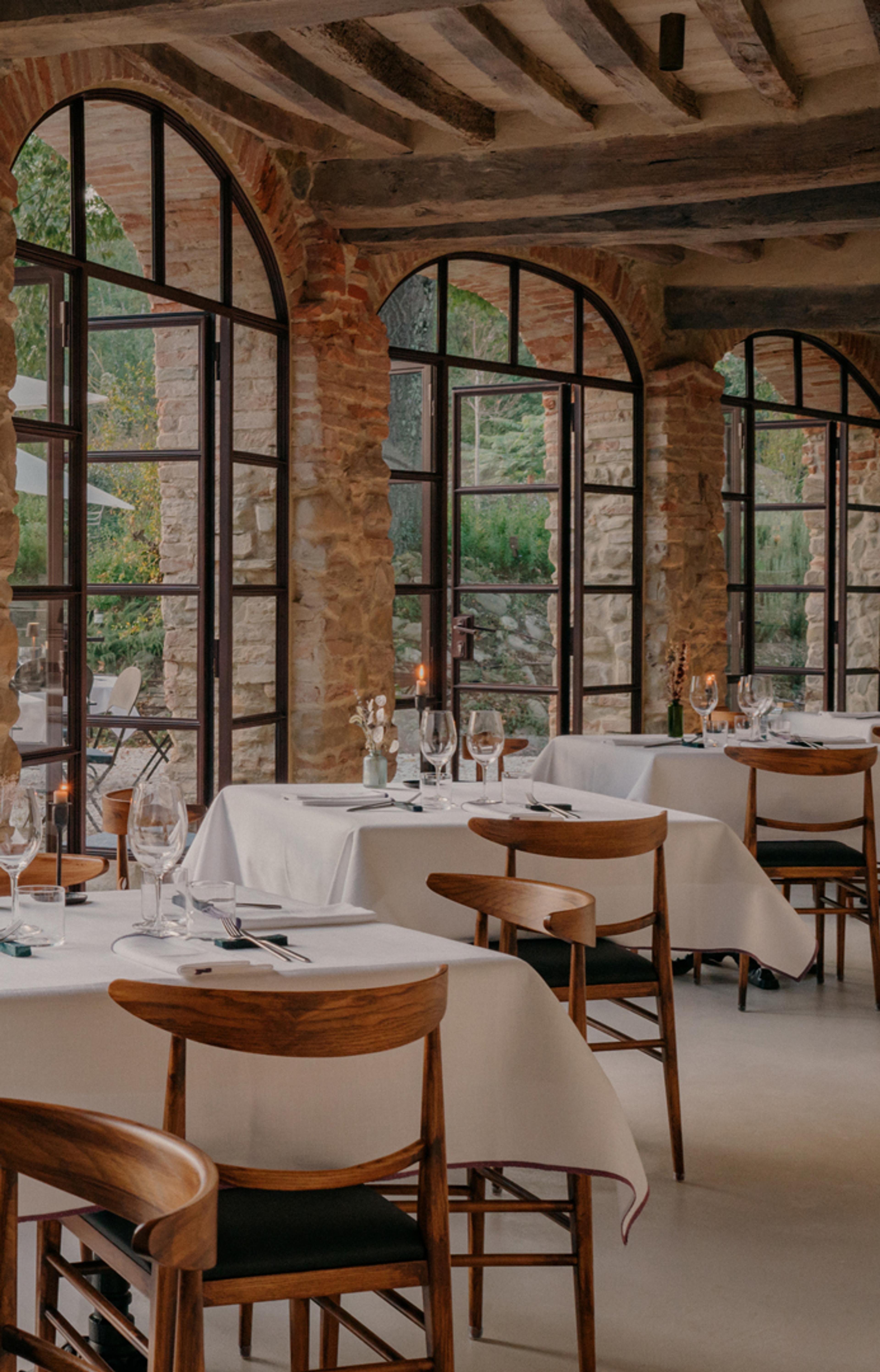 Para dar vida a su visión, eligieron la experiencia del Estudio Archiloop de Florencia y del diseñador JacopoVenerosiPesciolini, responsables de la restauración y renovación de los tres edificios del monasterio, así como del diseño interior.