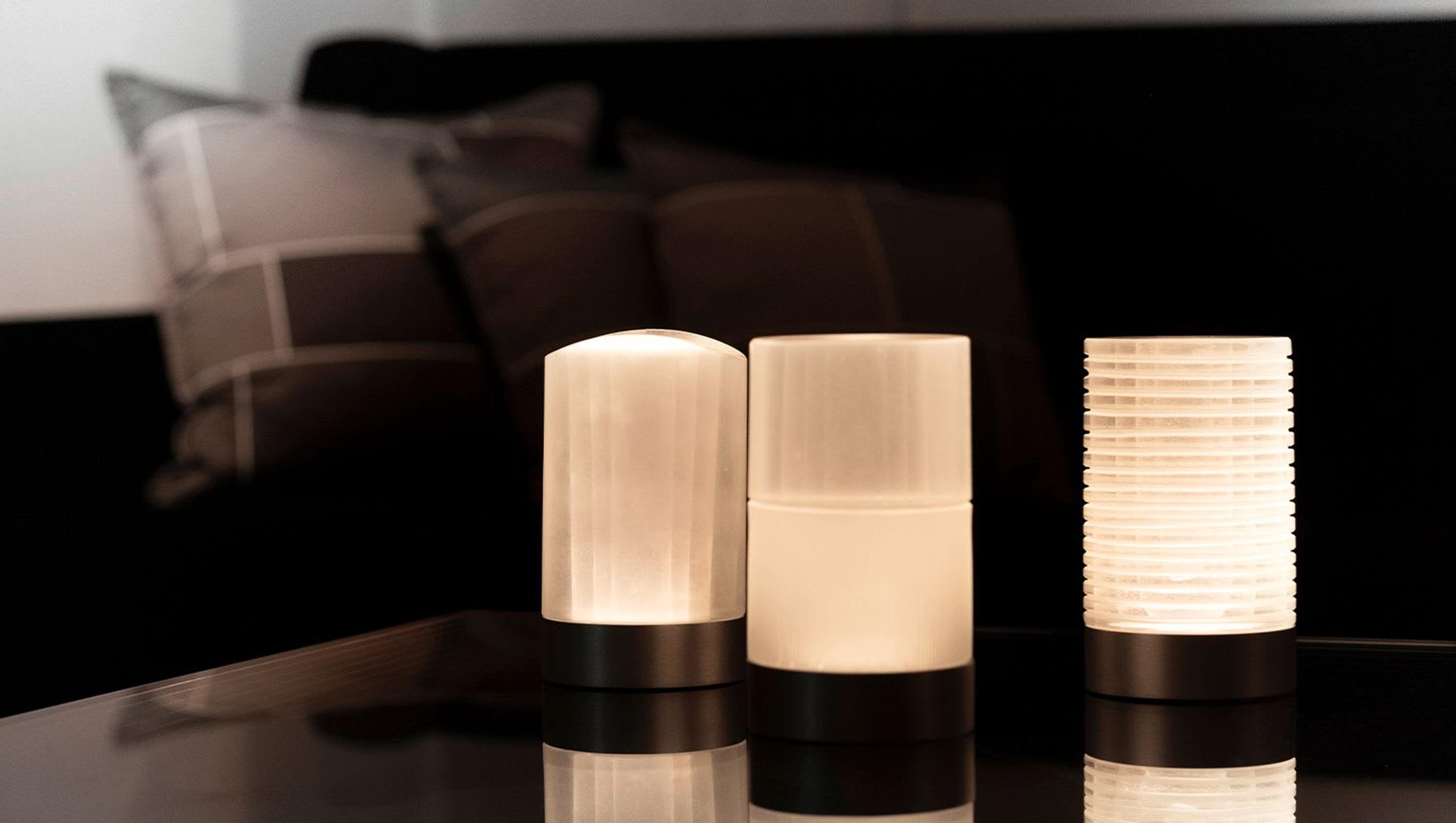 Las lámparas Haute y Petite están disponibles en tres modelos diferentes: Silk caracterizada por delicadas bandas verticales que culminan en la superficie superior ligeramente cóncava, Doll compuesta por una mitad lisa y la otra cruzada por un grueso moleteado y Stripe que está cubierta por gruesas líneas horizontales. Un detalle interesante de esta colección de lámparas es la presencia del iris interno obtenido alternando diferentes capas de color para conseguir un efecto murrina que, una vez iluminado, crea un efecto muy interesante, "Como si hubiera un alma suspendida en su interior", según palabras del propio Peri.