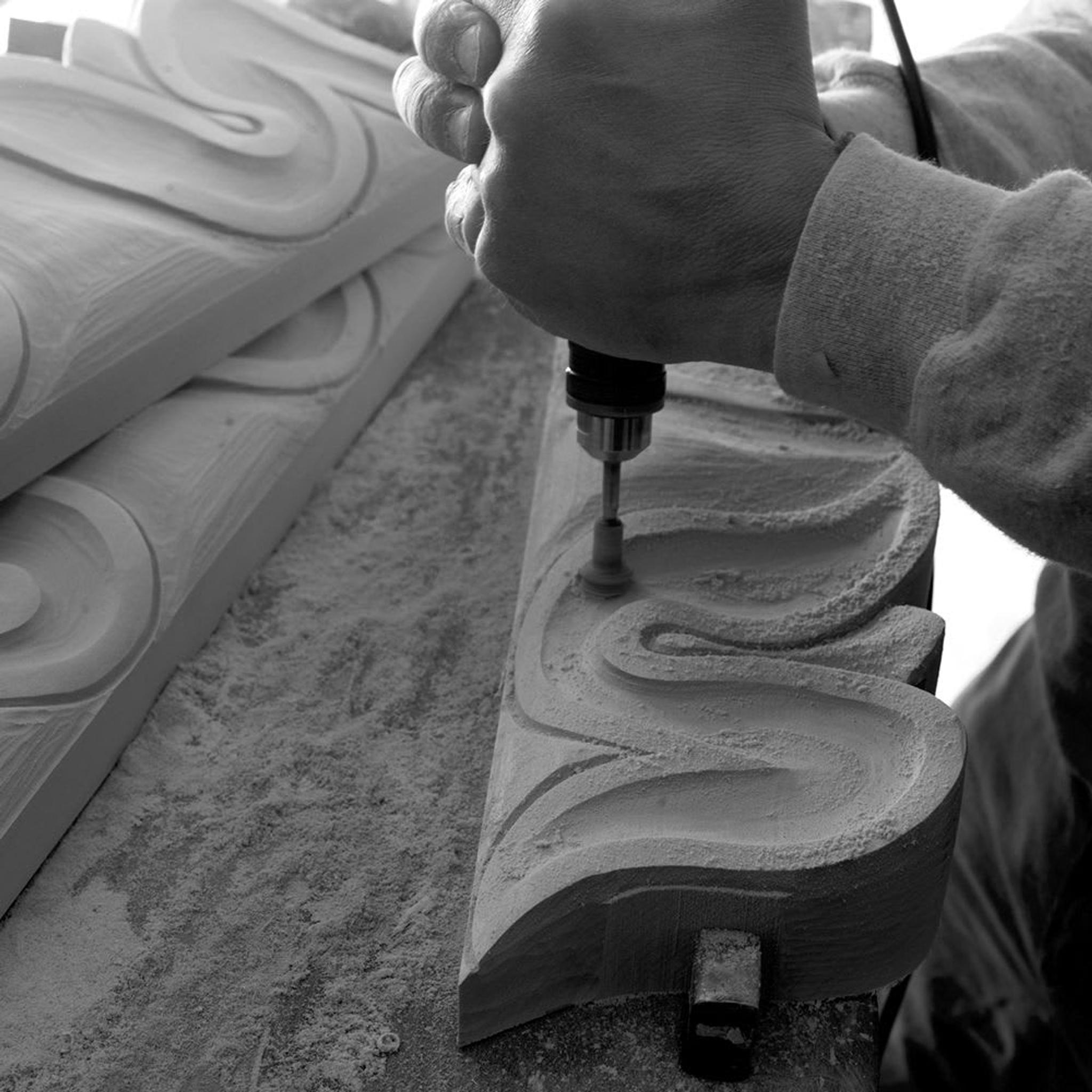 Dès le début du processus de production, le travail exclusif du bois et du métal est entièrement réalisé à la main. Il s'agit d'un processus exceptionnellement délicat, réalisé par un personnel interne spécialisé.