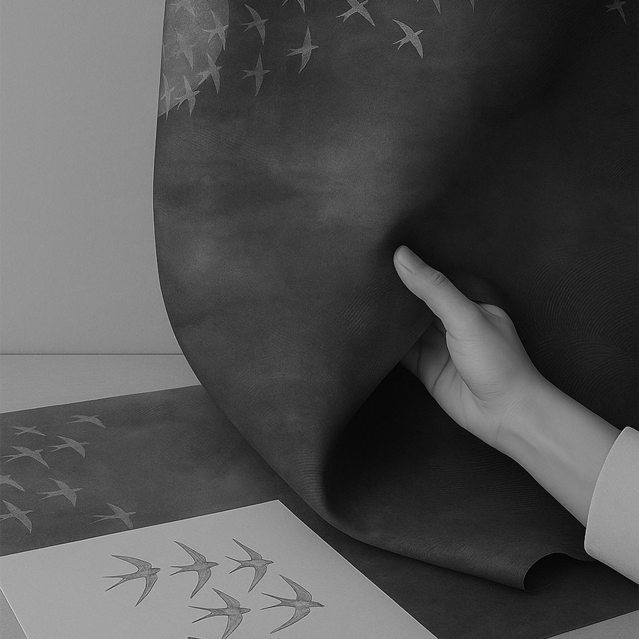 Cette étude méticuleuse de la matérialité va de pair avec une vision poétique du design. Les collections de Glamora ne sont pas seulement décoratives, elles racontent des histoires. La collection Tramae rend hommage au sculpteur italien Costantino Nivola et à sa technique de moulage au sable. Ses surfaces tridimensionnelles légèrement irrégulières évoquent la beauté expressive du plâtre modelé à la main, offrant profondeur, texture et caractère architectural. La collection Madama Butterfly, quant à elle, reflète la rencontre entre l'esthétique japonaise et le design européen. Des matériaux naturels, des contrastes raffinés et des géométries poétiques créent une composition sereine et stratifiée qui brouille la frontière entre la décoration et l'installation.