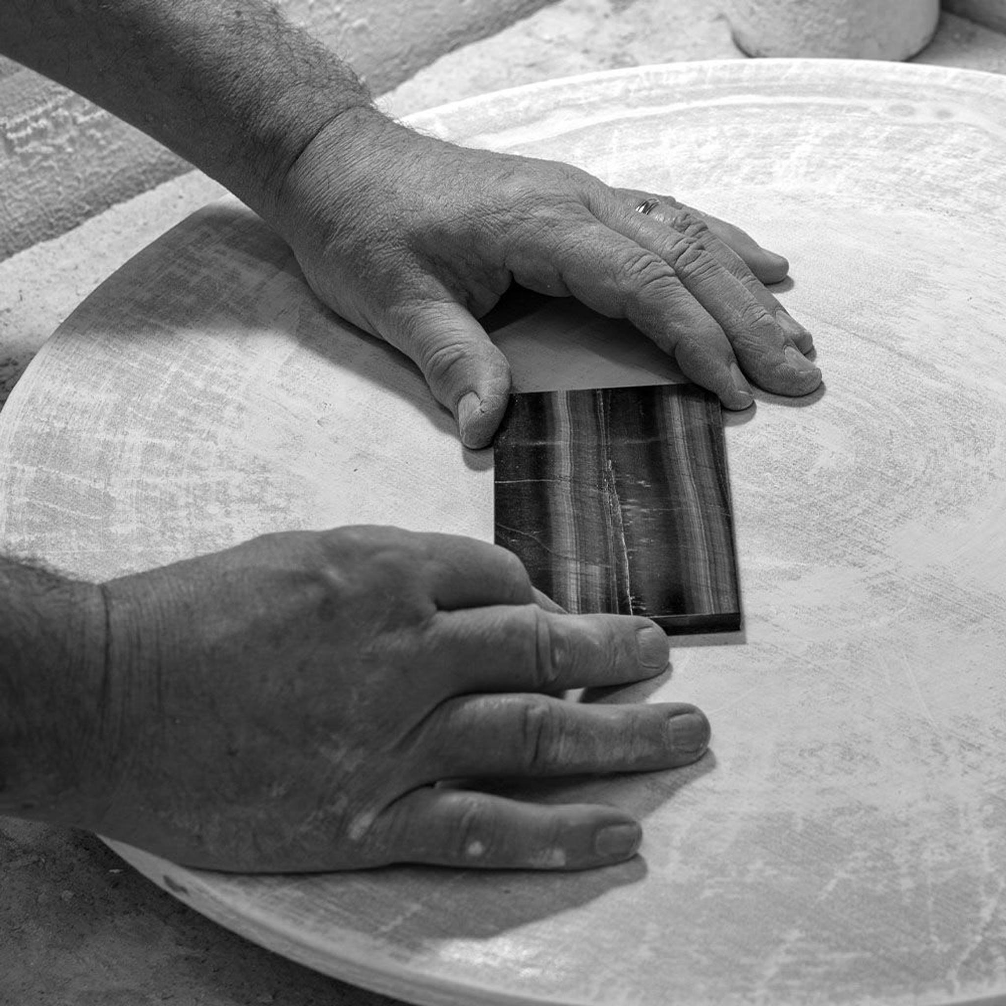 Toutes les pierres sélectionnées sont considérées comme semi-précieuses et pour cette raison elles sont insérées dans une catégorie entre les pierres précieuses et les marbres. Les pierres extraites du gisement sont nettement plus petites que les marbres et se présentent sous la forme de pierres brutes de dimensions variables. Les inserts en pierre dure peuvent être posés sur des portes et des supports verticaux ou horizontaux de tout type. Le processus de fabrication permet d'appliquer les pierres sur n'importe quel support rigide, qu'il soit en bois, en métal ou en pierre. Les pierres semi-précieuses peuvent également être appliquées sur des surfaces en maçonnerie, en créant des géométries design et des combinaisons élégantes de différents matériaux. Elles peuvent également être utilisées comme inserts sur des boutons, des poignées, des robinets, des panneaux à boutons et des interrupteurs, des tiges, des cabochons ou des surfaces arrondies. La capacité de toujours obtenir un produit fini harmonieux avec un haut niveau de finition doit être considérée comme un avantage des artisans.