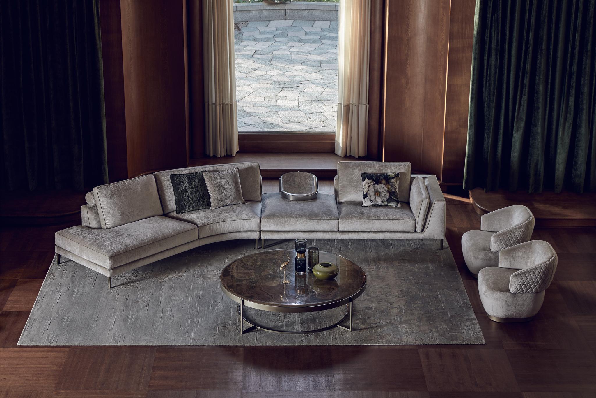 Opera Contemporary se distingue par son langage esthétique raffiné et en constante évolution, capable d'allier élégance et polyvalence dans chaque création. La vaste gamme de finitions, de tissus et de matériaux permet une variété infinie de combinaisons, transformant la collection en un système "extensible" qui s'adapte naturellement aux différents contextes : des résidences privées aux espaces représentatifs, en passant par les environnements contractuels les plus exclusifs. Cette approche flexible et transversale reflète la volonté constante d'innovation de la marque, qui interprète avec sensibilité les divers besoins d'une clientèle internationale sophistiquée.