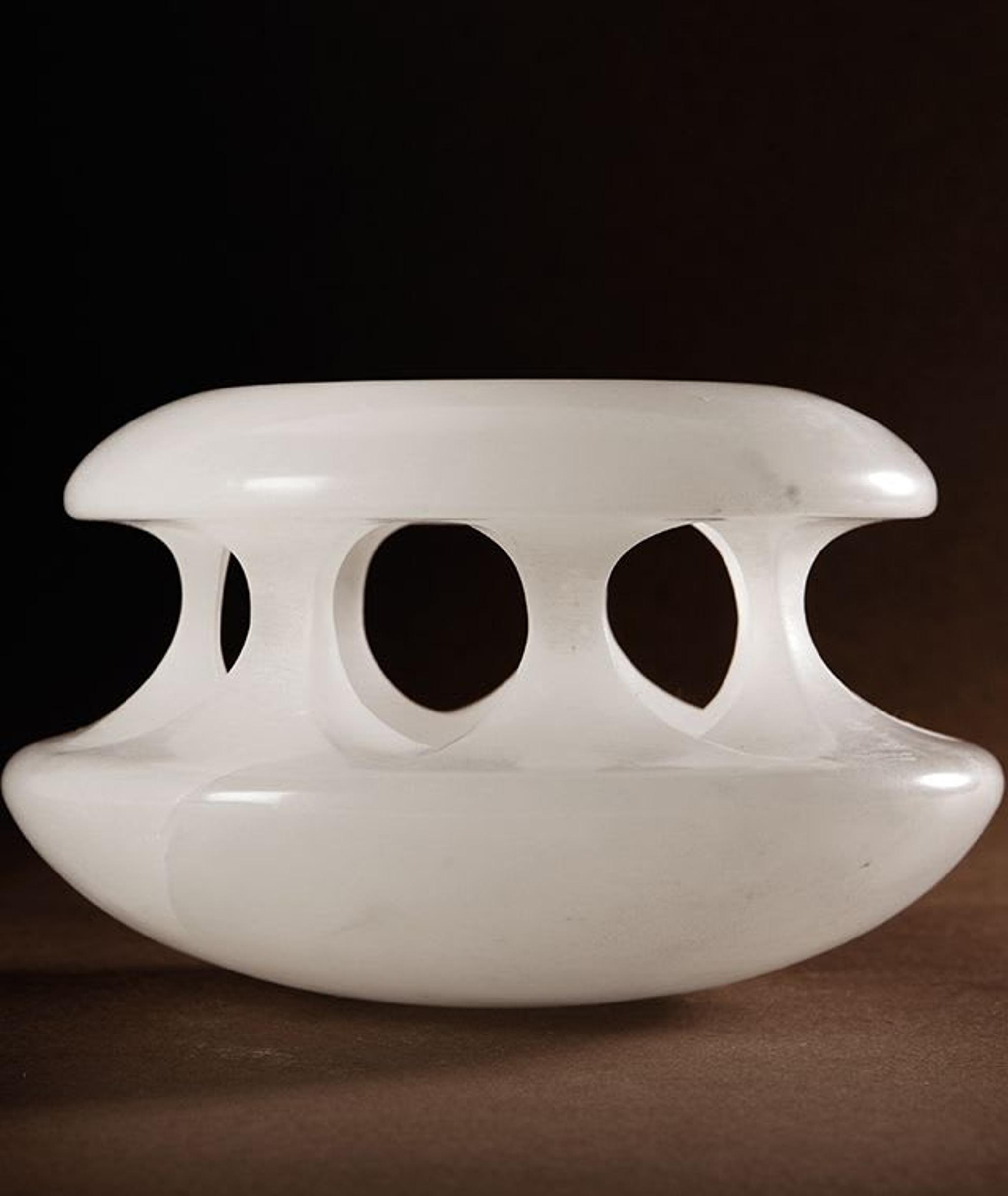 L'activité d'Angelo Mangiarotti en tant qu'architecte s'est déroulée parallèlement à sa carrière de concepteur de produits et de conférencier. Dans les années 1960, après avoir obtenu la chaire de design industriel à l'université de Venise, il s'est plongé dans la recherche matérielle, un sujet qui l'a toujours fasciné et pour lequel il est devenu internationalement reconnu. En commençant par explorer le marbre, le verre et le bois, il conçoit un certain nombre de produits industriels emblématiques, tels que les lampes en verre soufflé Lesbo et Saffo pour Artemide, et plus tard les célèbres tables Eros et Eccentrico en marbre fin de Carrare pour Agape. Son fauteuil IN 301, créé pour Zanotta, est considéré comme l'un des modèles les plus emblématiques de tous les temps et fait désormais partie de la collection permanente de la Triennale de Milan.