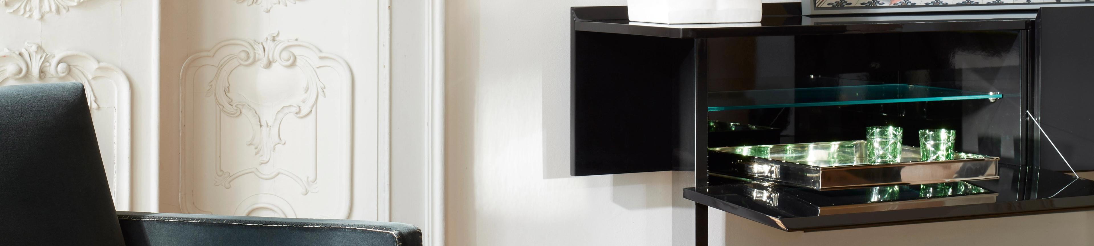 Découvrez une sélection d'élégants buffets noirs fabriqués par les meilleurs artisans italiens. Mélange parfait de savoir-faire traditionnel et de design moderne, chacune de ces pièces rehausse vos espaces de vie d'une sophistication intemporelle et d'une touche unique de charme italien.