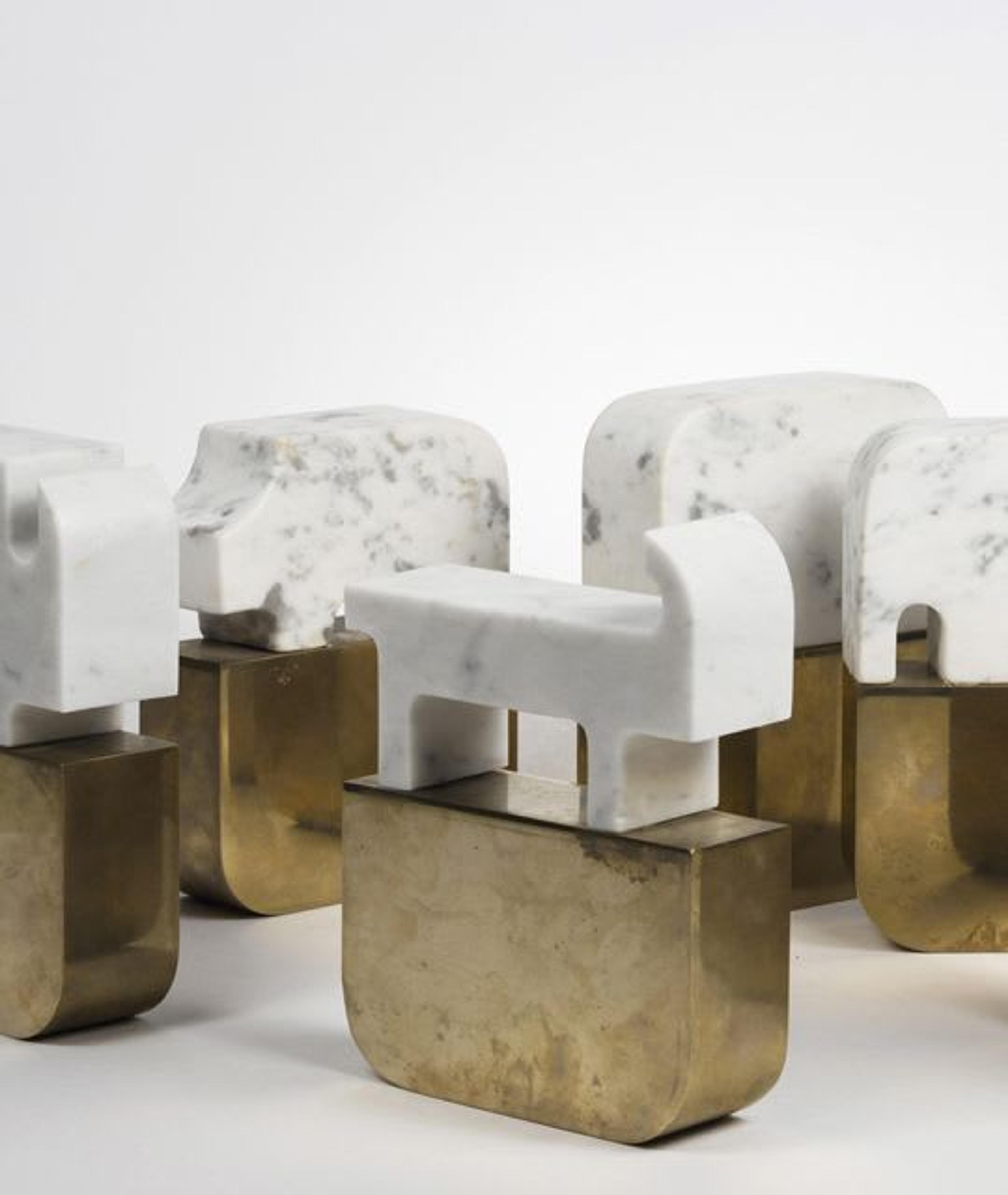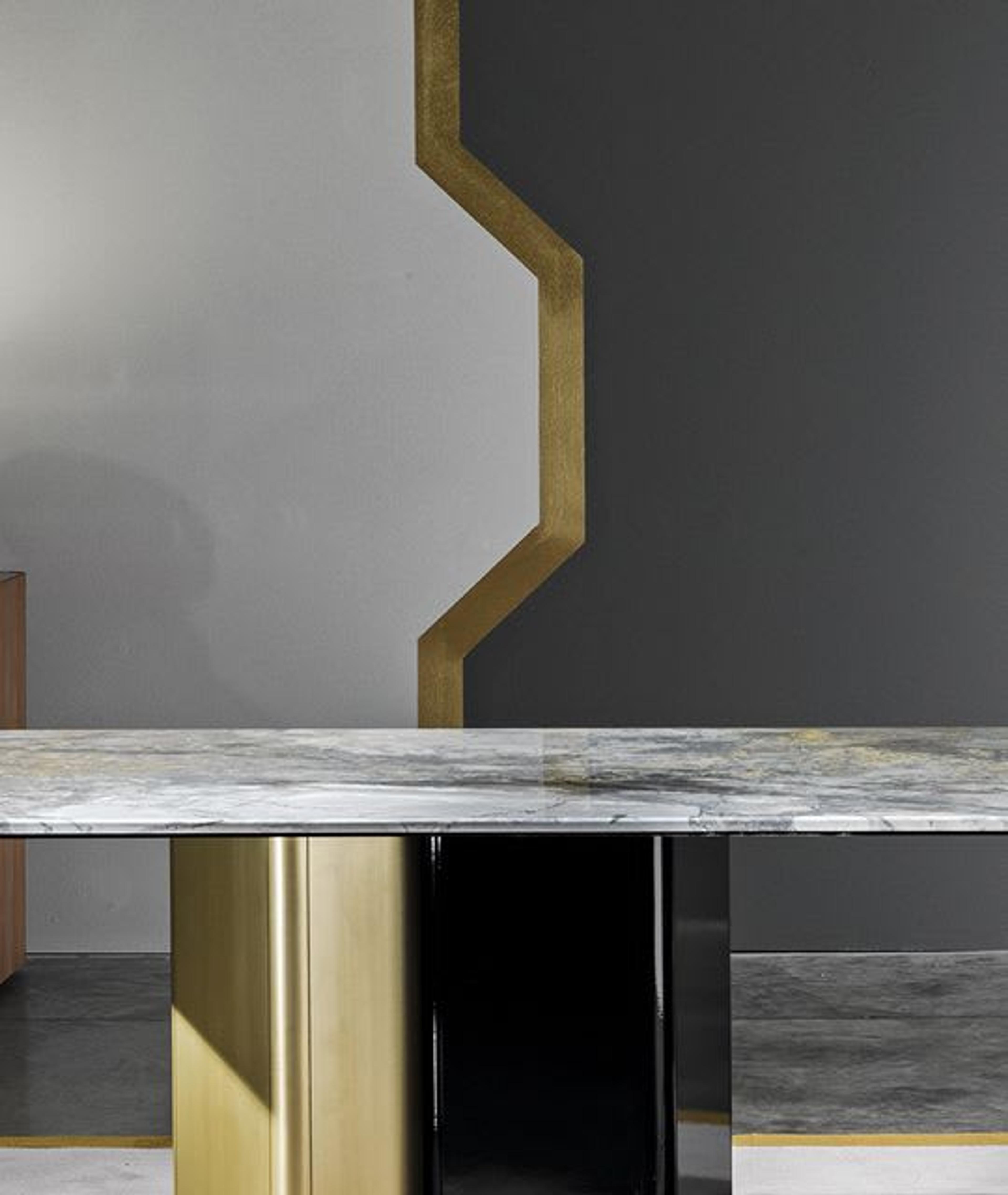 Le marbre et le laiton s'unissent dans une combinaison sophistiquée : les veines du marbre se mêlent à l'élégance du laiton, apportant une touche lumineuse à vos intérieurs. Laissez-vous inspirer par le design contemporain et les silhouettes minimalistes des tables, lampes et autres pièces raffinées fabriquées entièrement à la main par d'habiles artisans italiens.